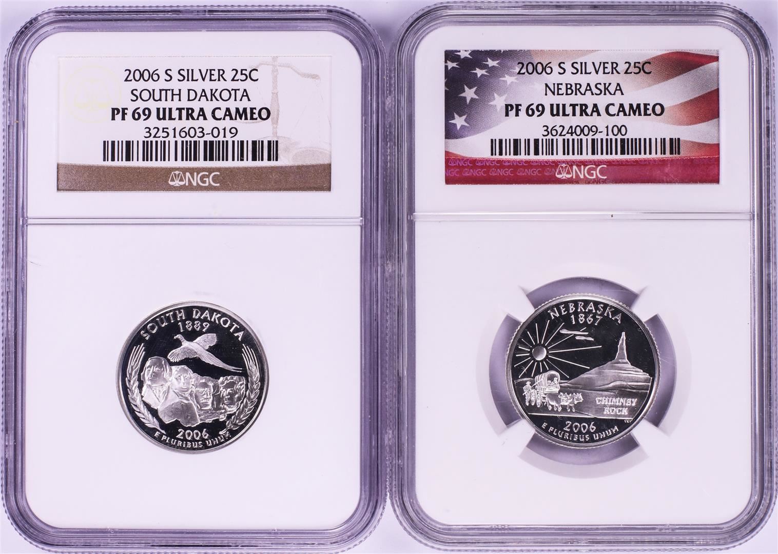 One Lot of (2) 2006-S Proof Silver State Quarter Coins NGC PF69 Ultra Cameo.