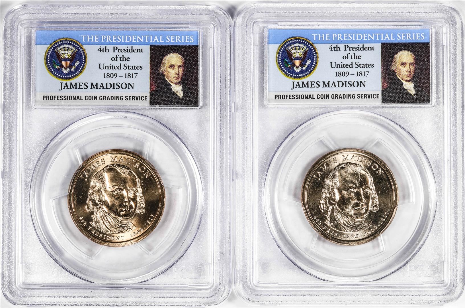 Lot of (2) 2007-P James Madison Presidential Dollar Coins PCGS MS65