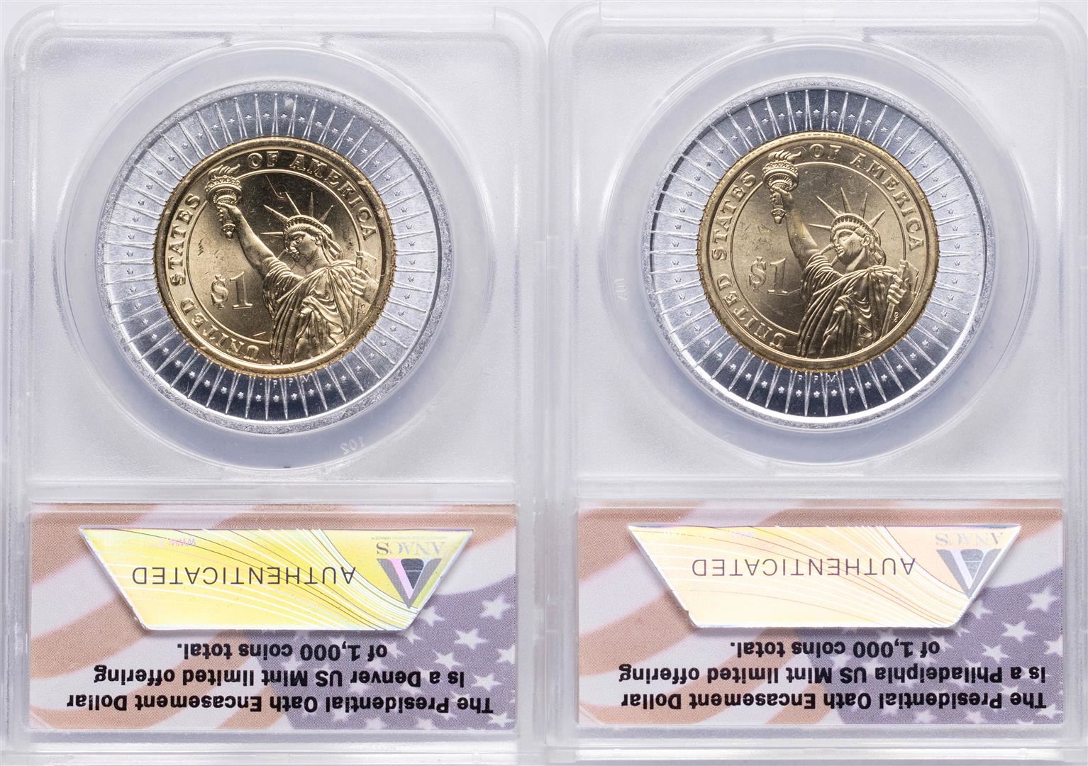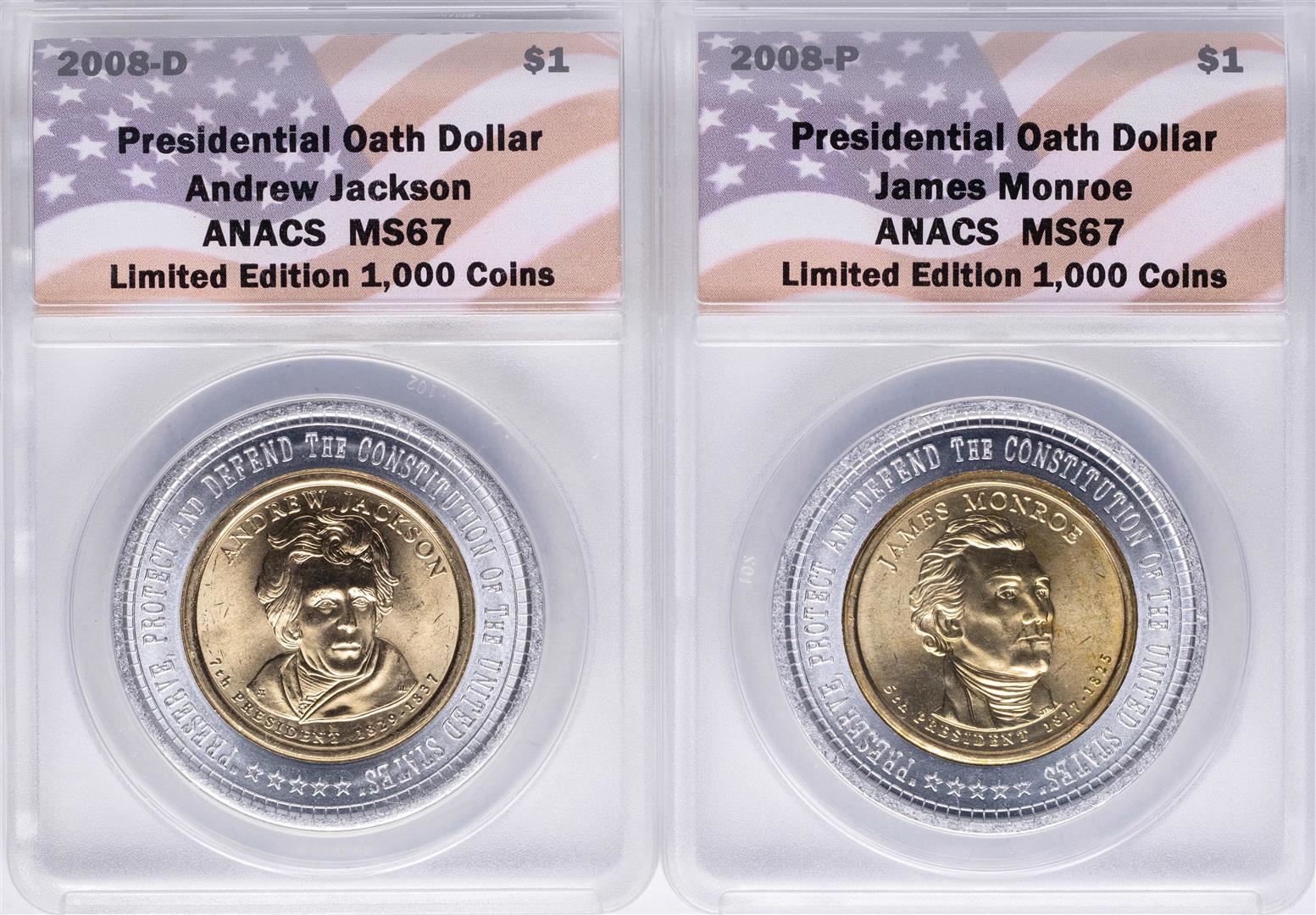 Lot of (2) 2008 Presidential Oath Dollar Coins ANACS MS67