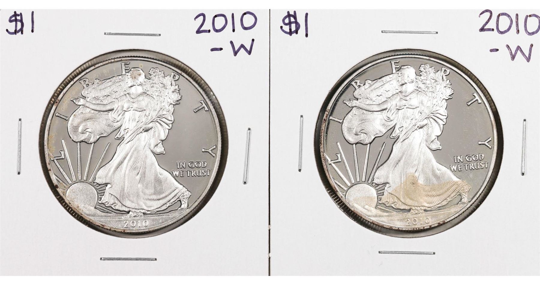 One Lot of (2) 2010-W $1 Proof American Silver Eagle Coins.