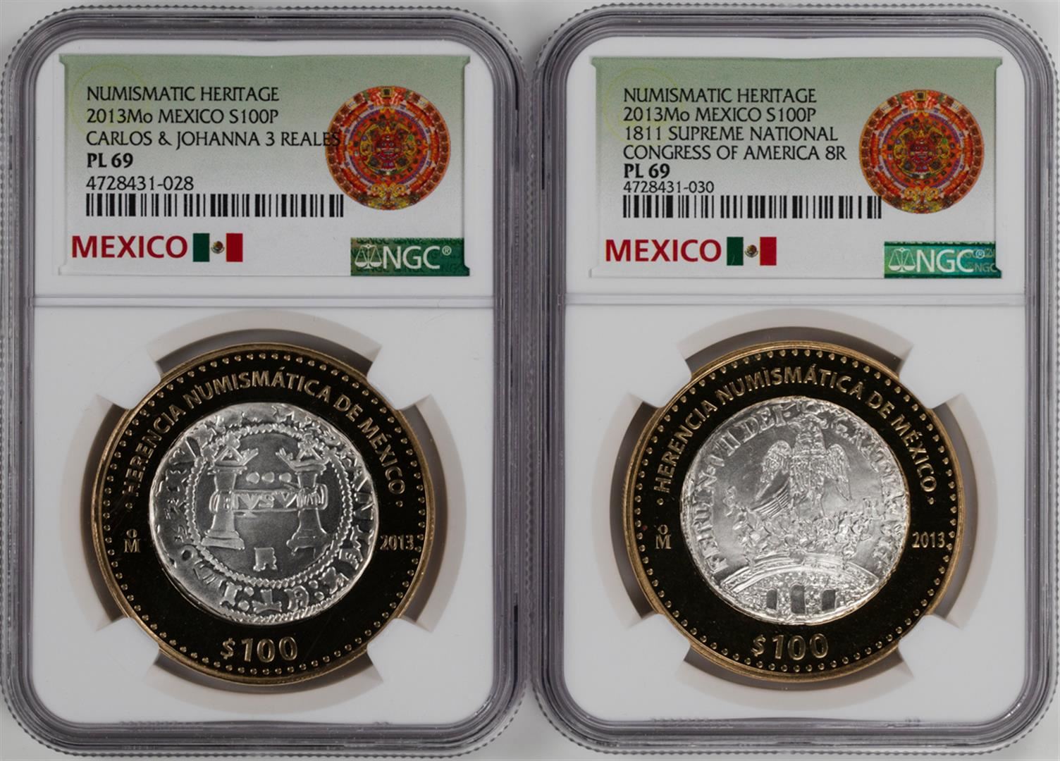 One Lot of (2) 2013 Mexico Congress of America Coins NGC PL69. NGC Certified.