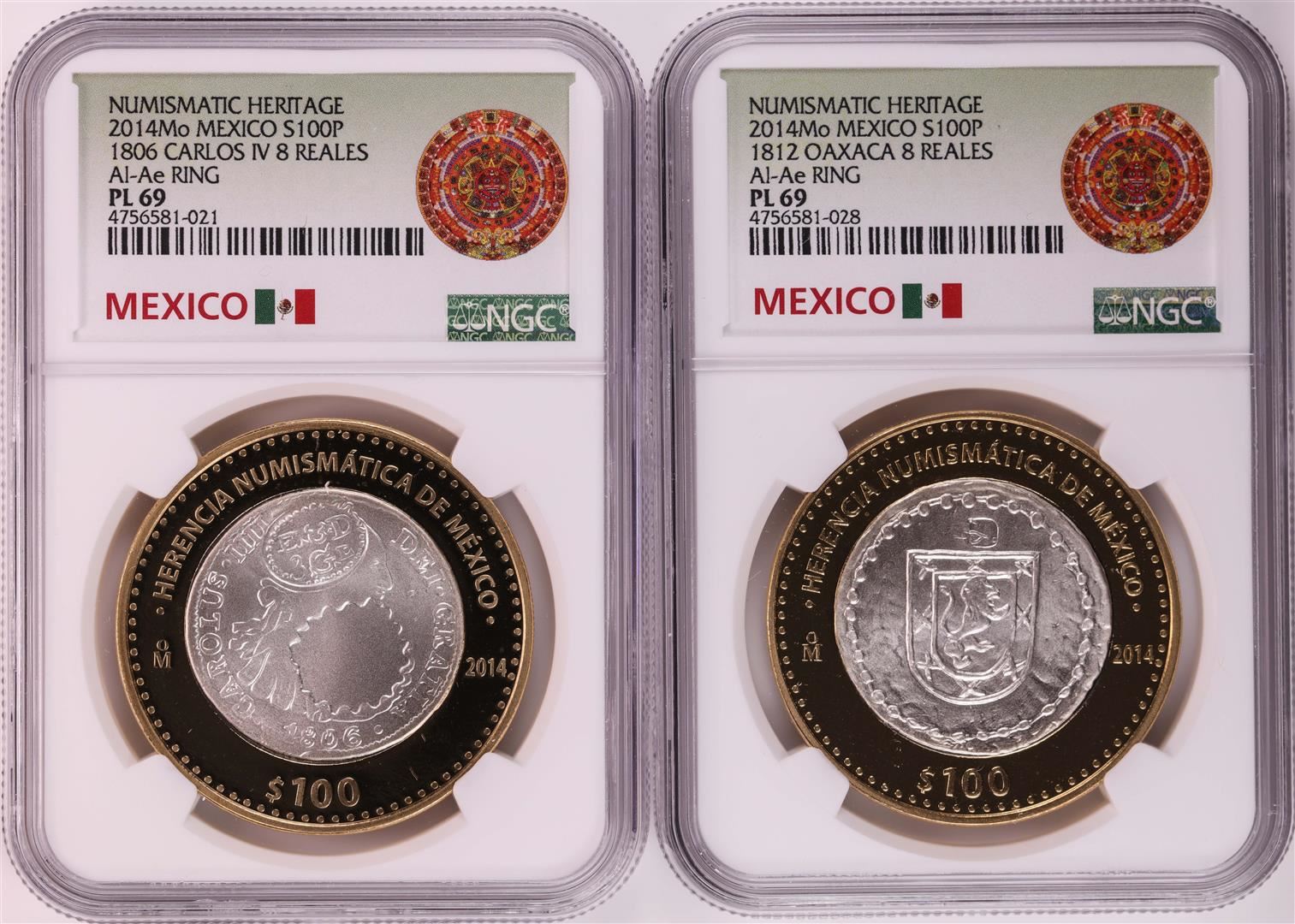 Lot of (2) 2014Mo Mexico 100 Pesos Bi-Metal Silver Coins NGC PL69