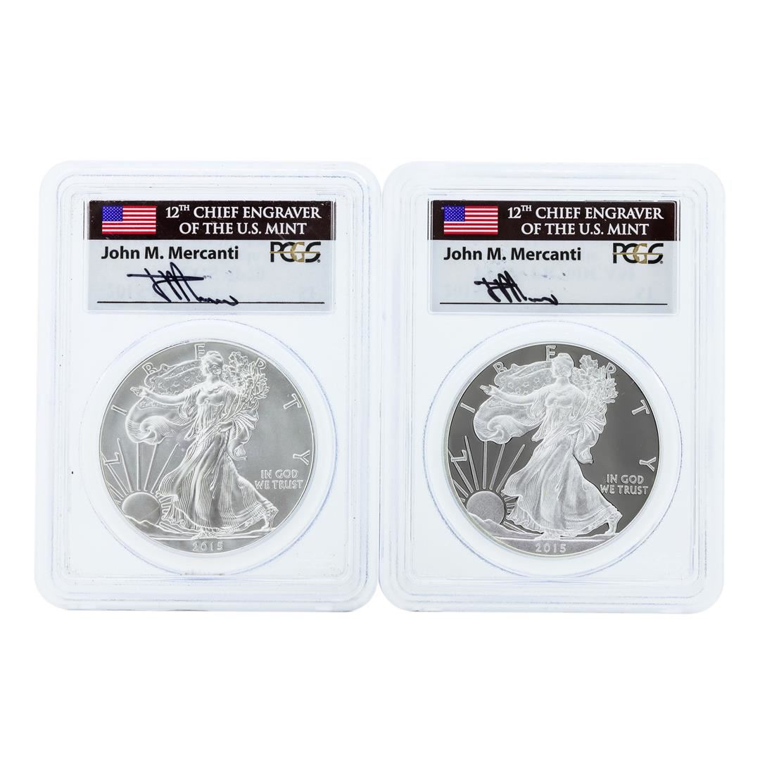 Lot of (2) 2015-W $1 American Silver Eagle Coins PCGS SP70 & PR70DCAM