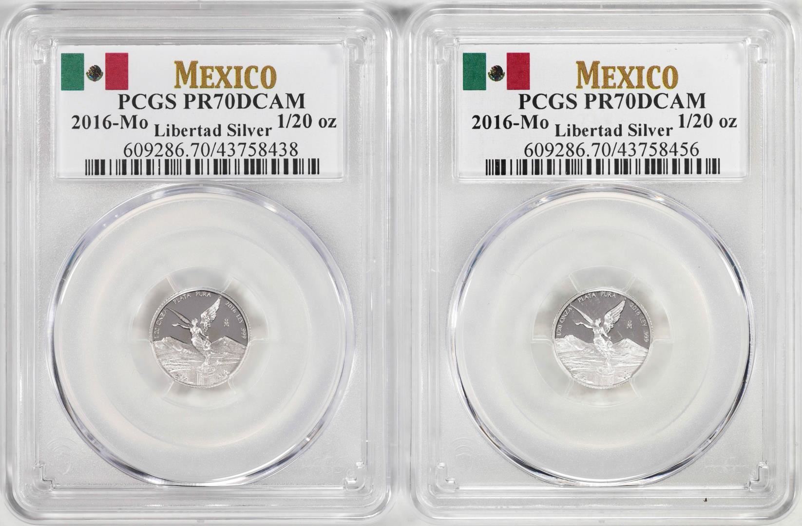 Lot of (2) 2016-Mo Mexico Proof 1/20 oz Silver Libertad Coins PCGS PR70DCAM