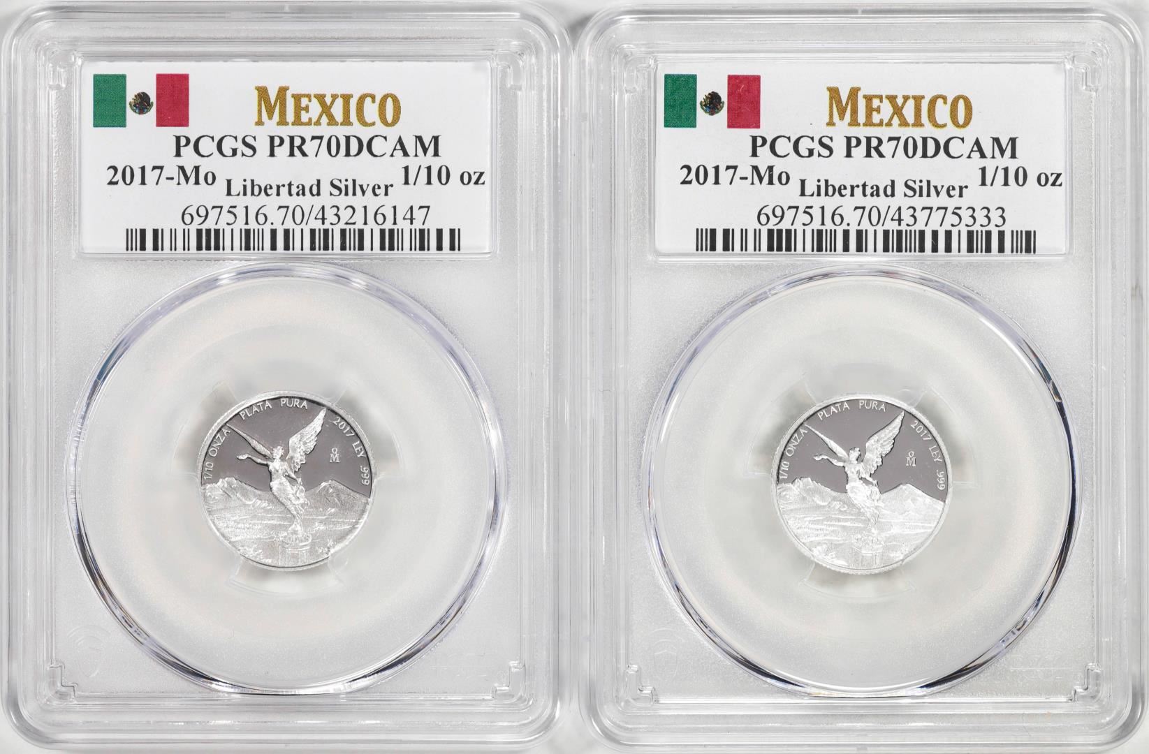 Lot of (2) 2017-Mo Mexico Proof 1/10 oz Silver Libertad Coins PCGS PR70DCAM