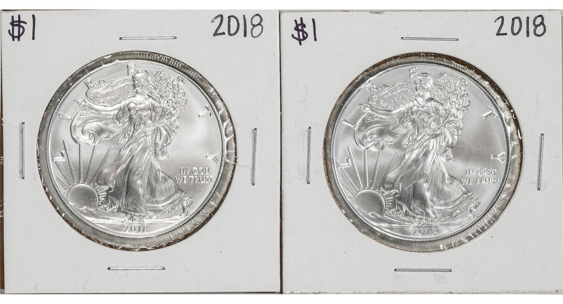 One Lot of (2) 2018 $1 American Silver Eagle Coin.