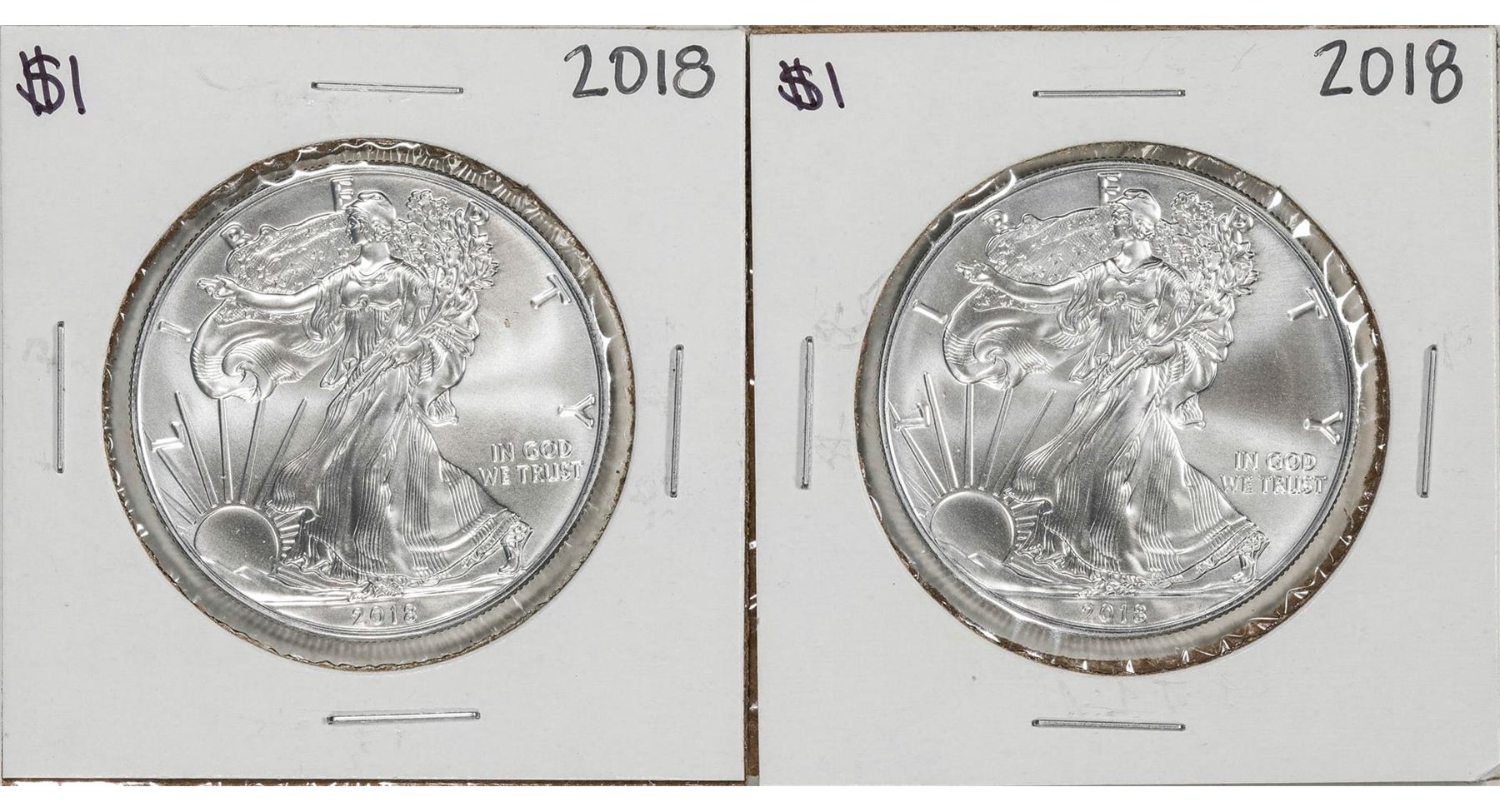 One Lot of (2) 2018 $1 American Silver Eagle Coin.