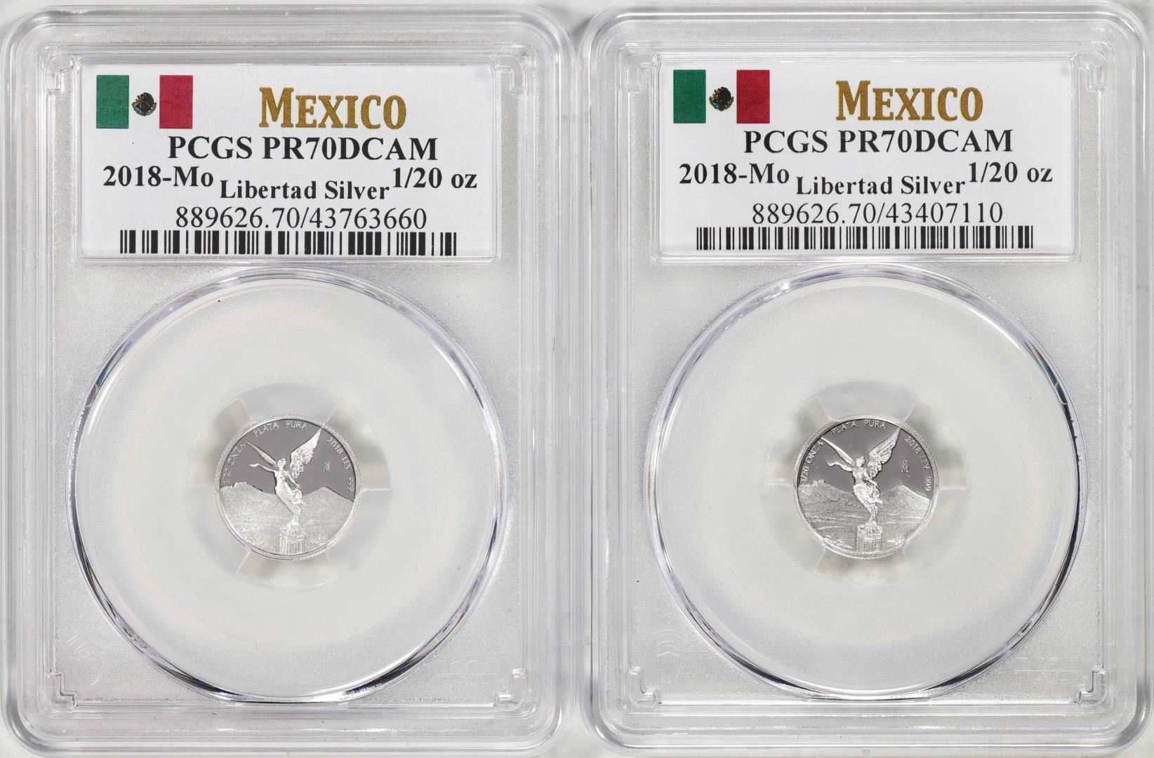 Lot of (2) 2018-Mo Mexico Proof 1/20 oz Silver Libertad Coins PCGS PR70DCAM