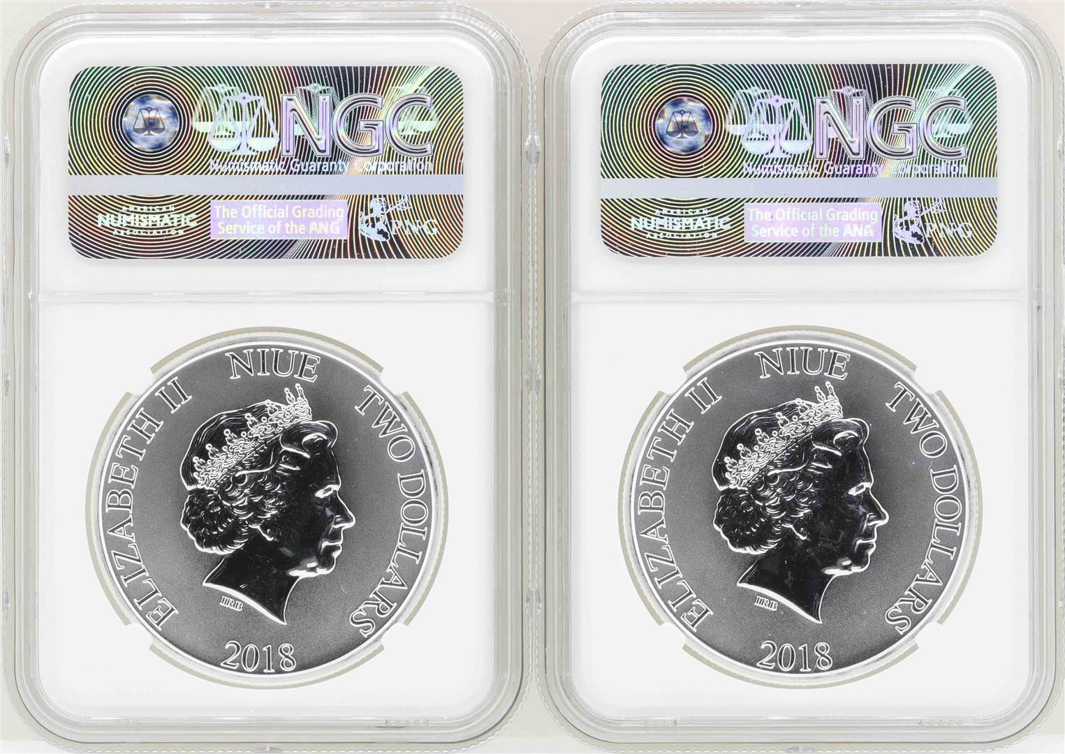One Lot of (2) 2018 Niue $2 Star Wars Stormtrooper Silver Coins NGC MS70 Early Releases. NGC Certified.