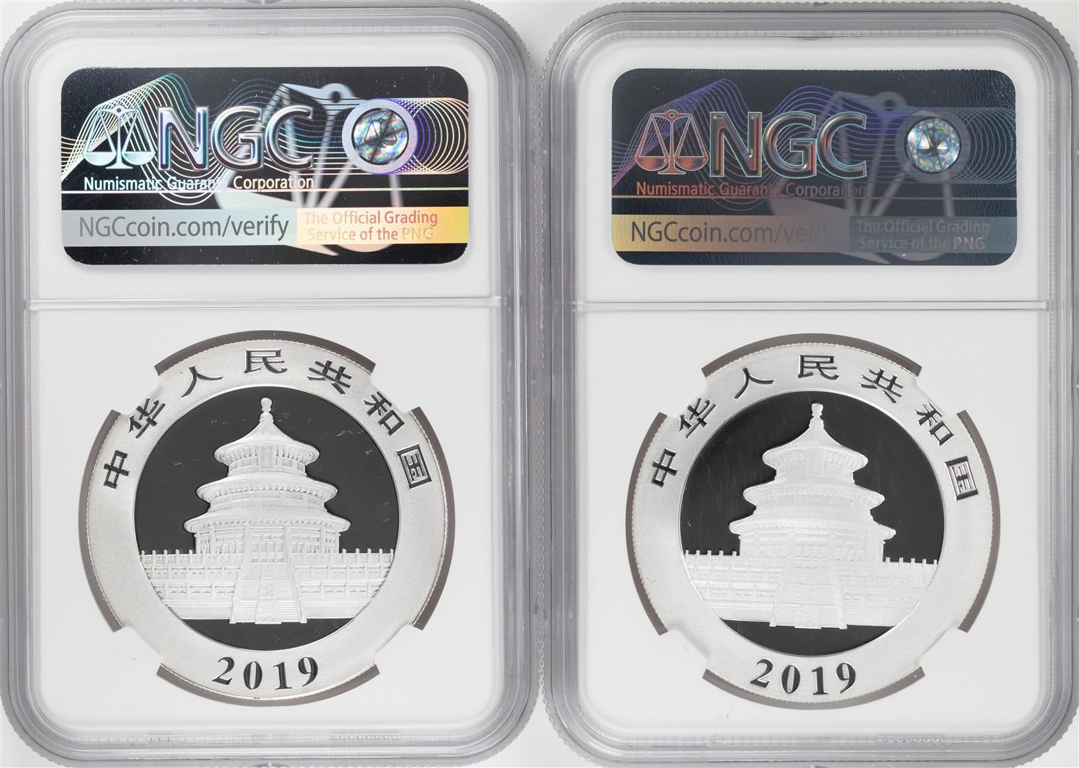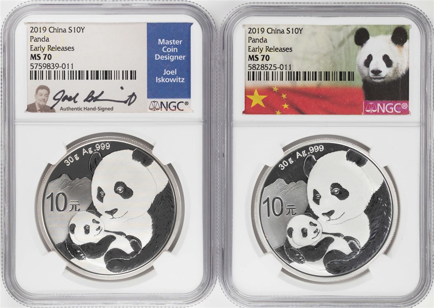 Lot of (2) 2019 China 10 Yuan Silver Panda Coins NGC MS70 Early Releases