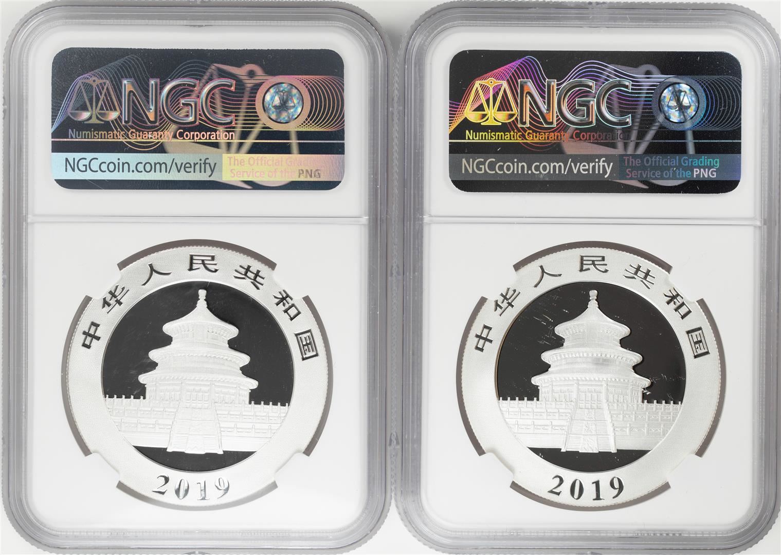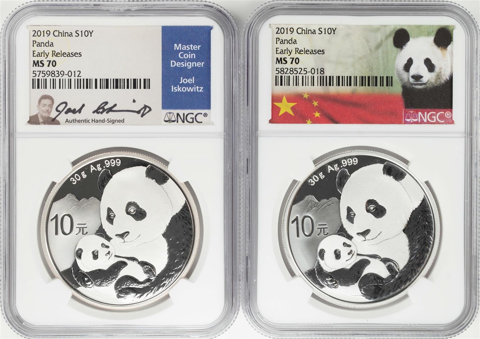 Lot of (2) 2019 China 10 Yuan Silver Panda Coins NGC MS70 Early Releases