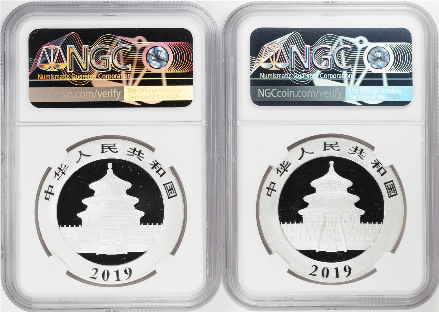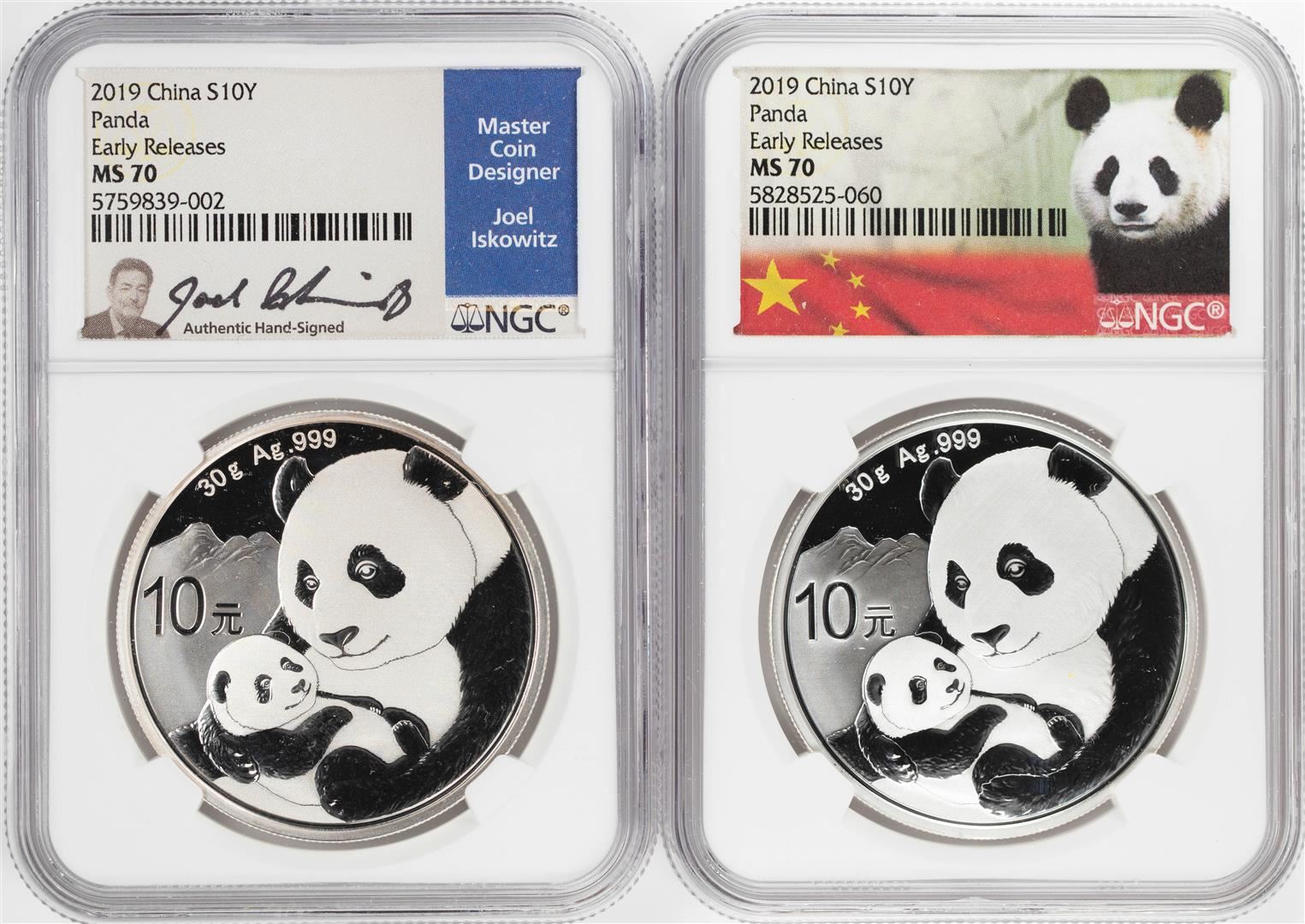 Lot of (2) 2019 China 10 Yuan Silver Panda Coins NGC MS70 Early Releases