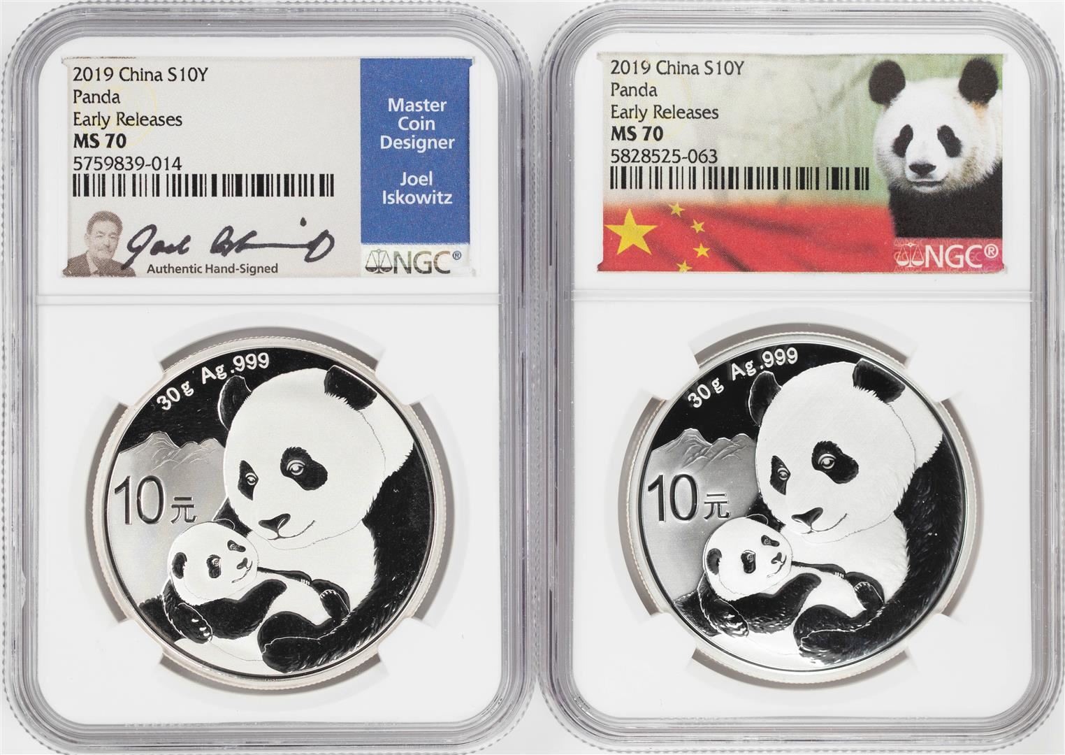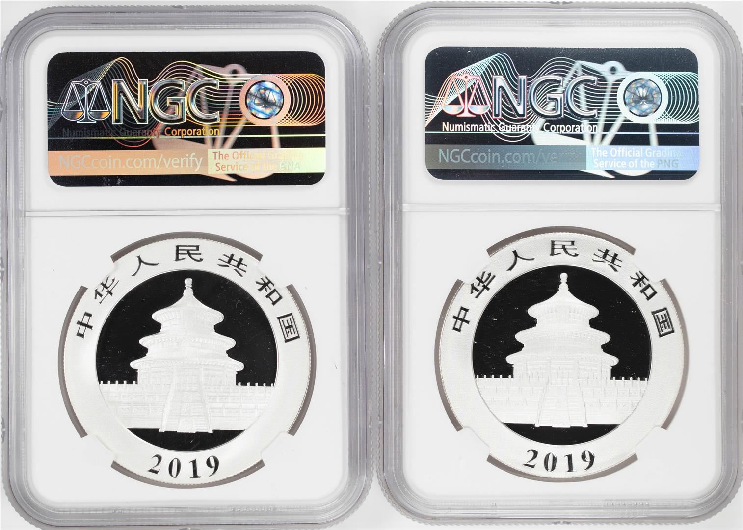 Lot of (2) 2019 China 10 Yuan Silver Panda Coins NGC MS70 Early Releases