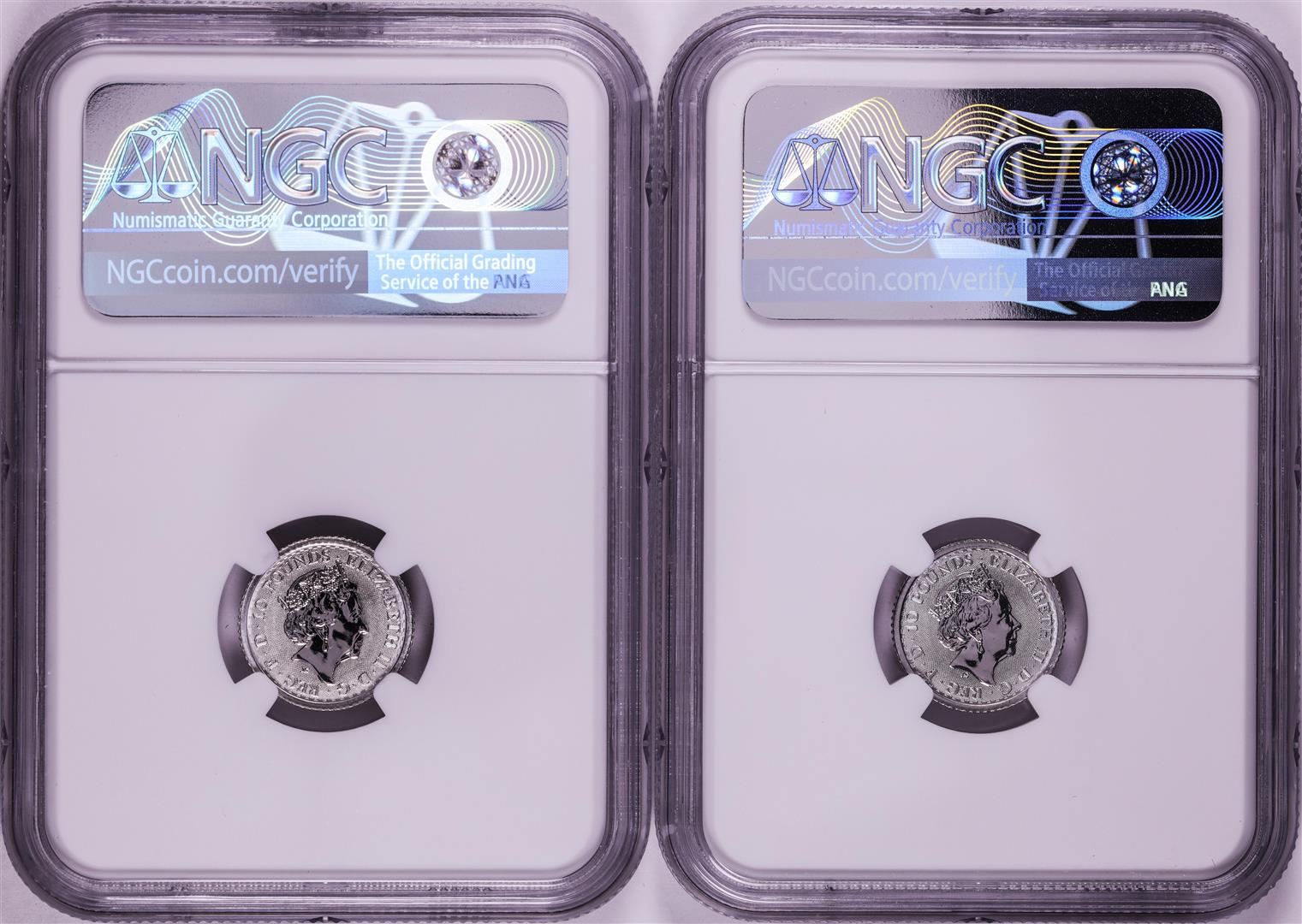 Lot of (2) 2021 Great Britain 10 Pounds Britannia 1/10oz Platinum Coins NGC MS69