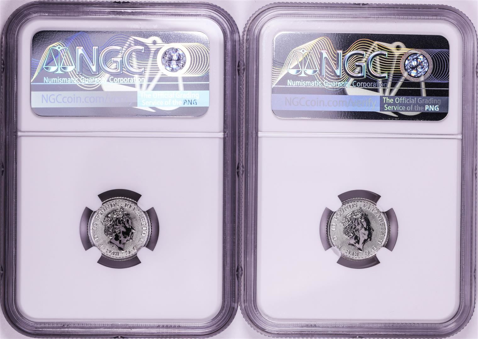 One Lot of (2) 2021 Great Britain 10 Pounds Britannia 1/10oz Platinum Coins NGC MS69. NGC Certified.