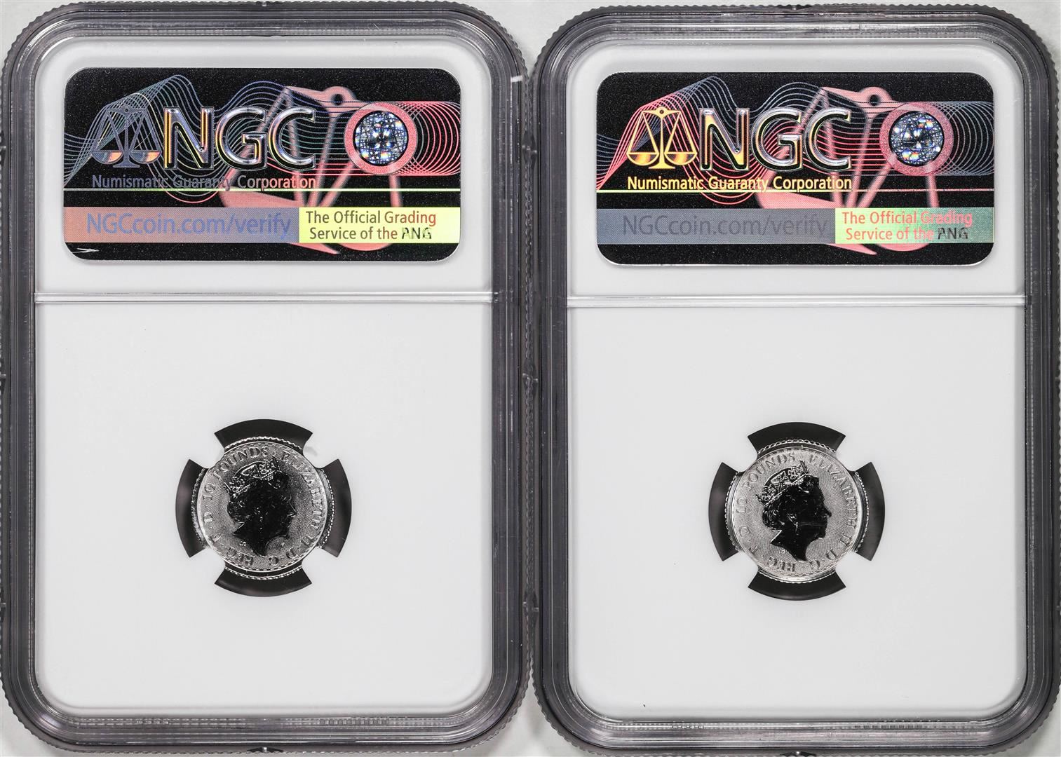 One Lot of (2) 2022 Great Britain 10 Pounds Britannia 1/10oz Platinum Coins NGC MS69. NGC Certified.