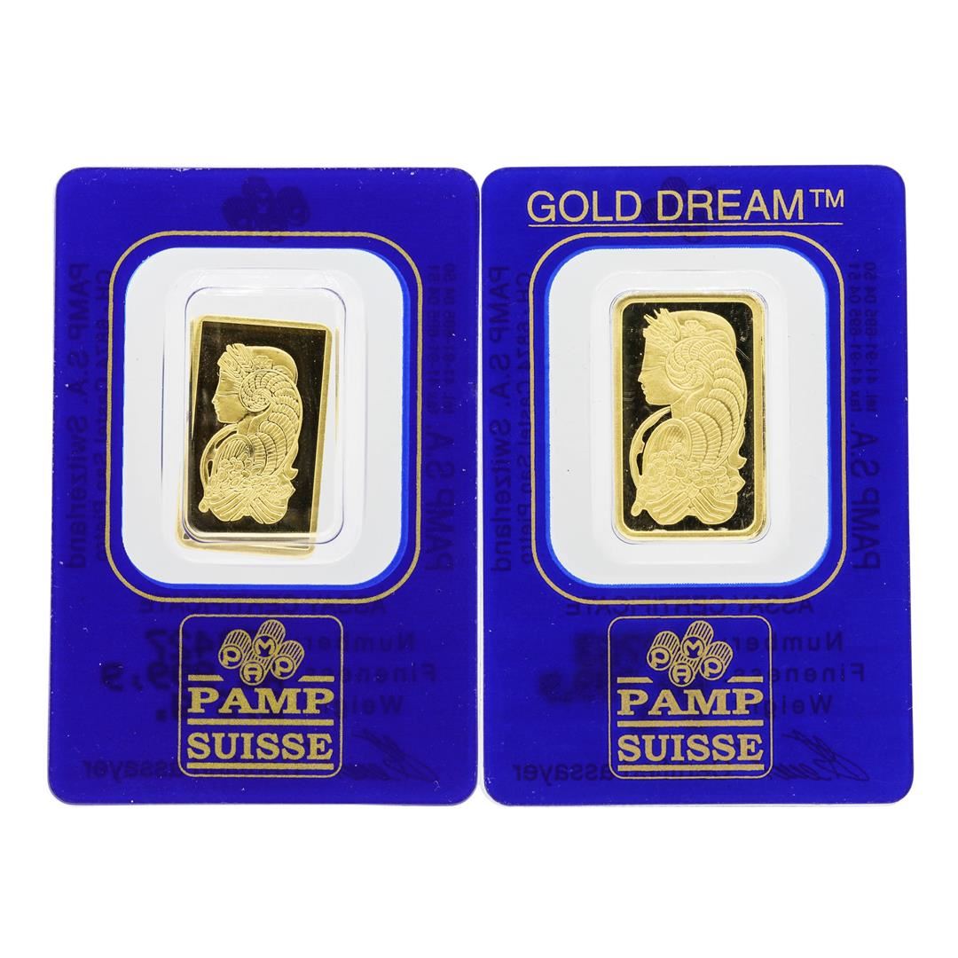 One Lot of 2.5 & 5 gram PAMP Suisse .9999 Fine Gold Ingot Bars.