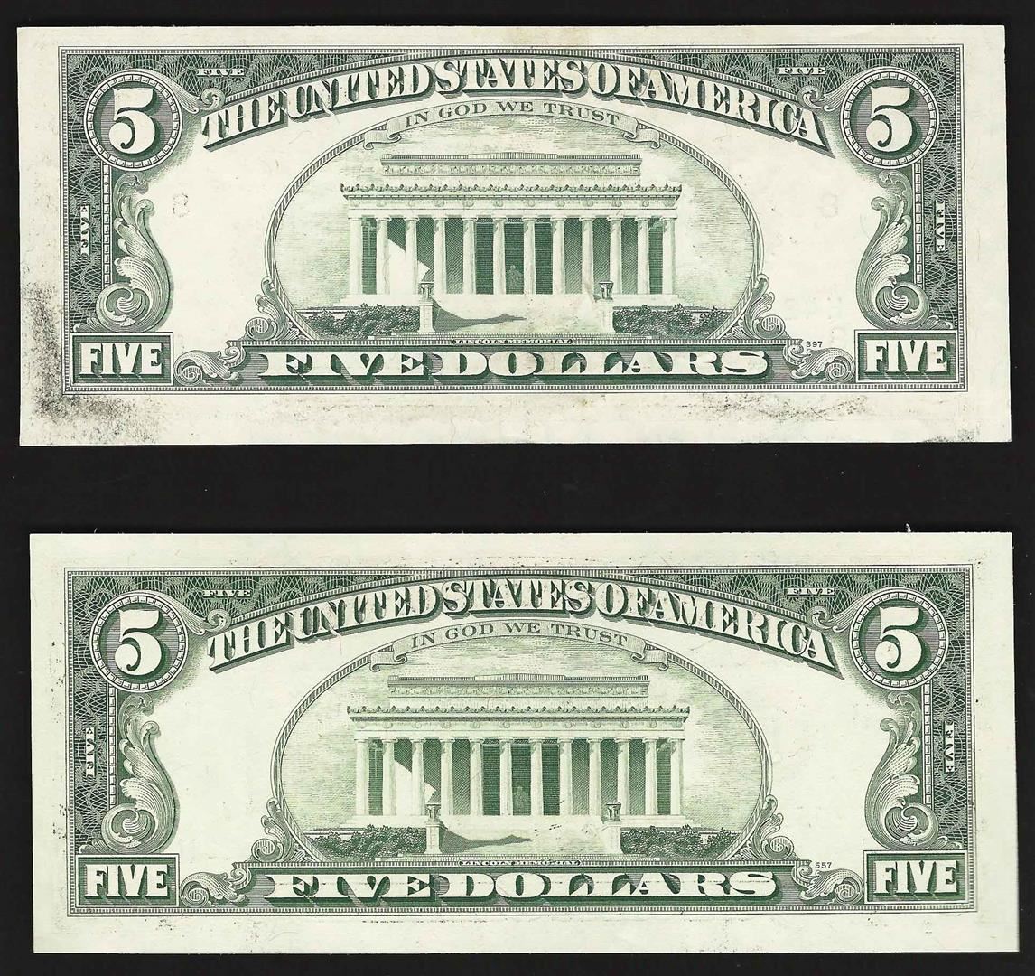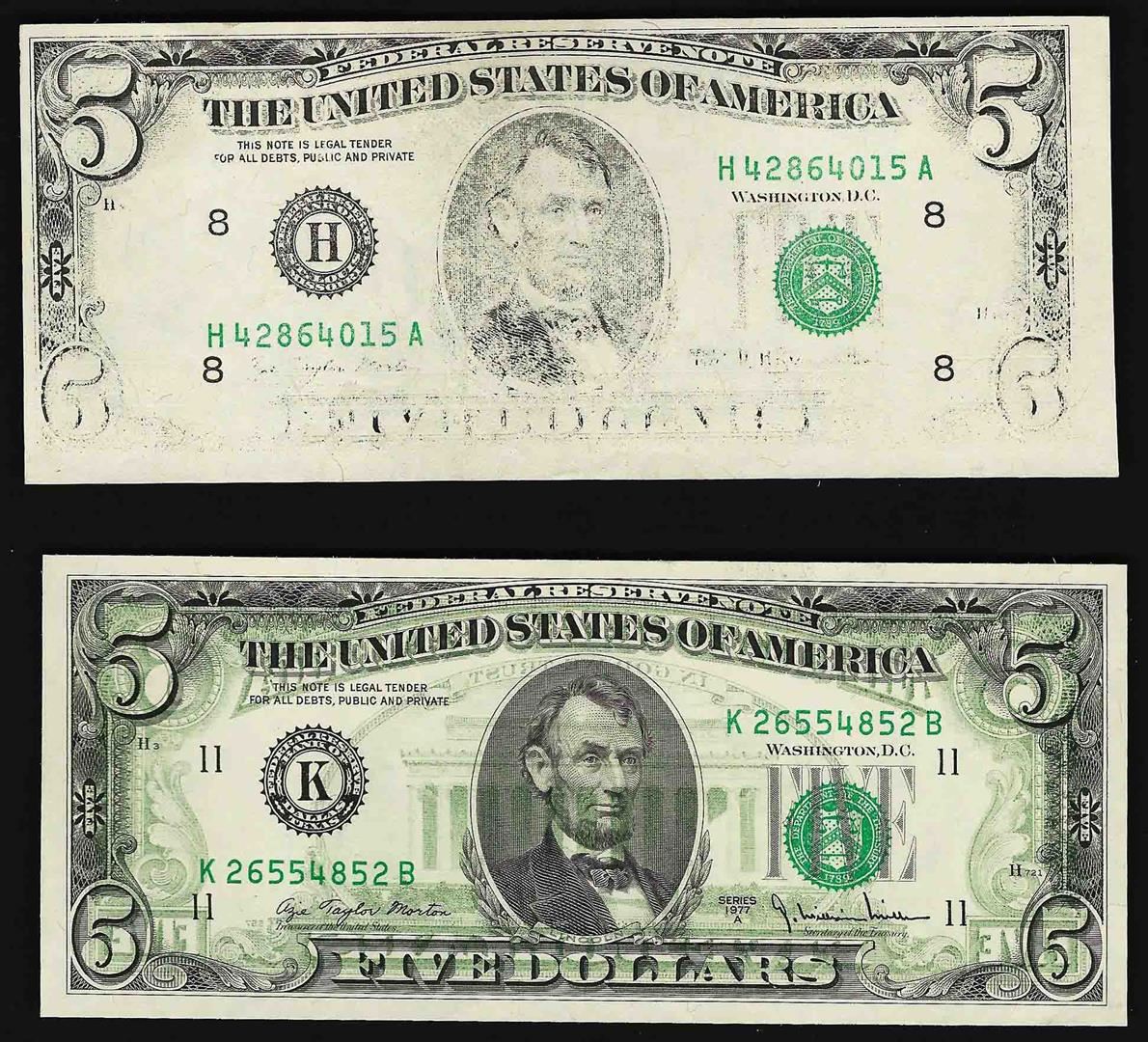 One Lot of (2) $5 Federal Reserve Error Notes.