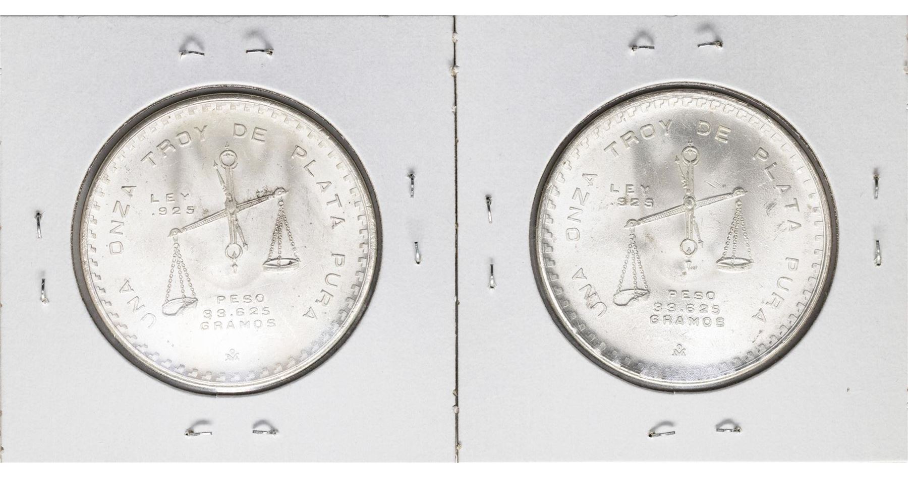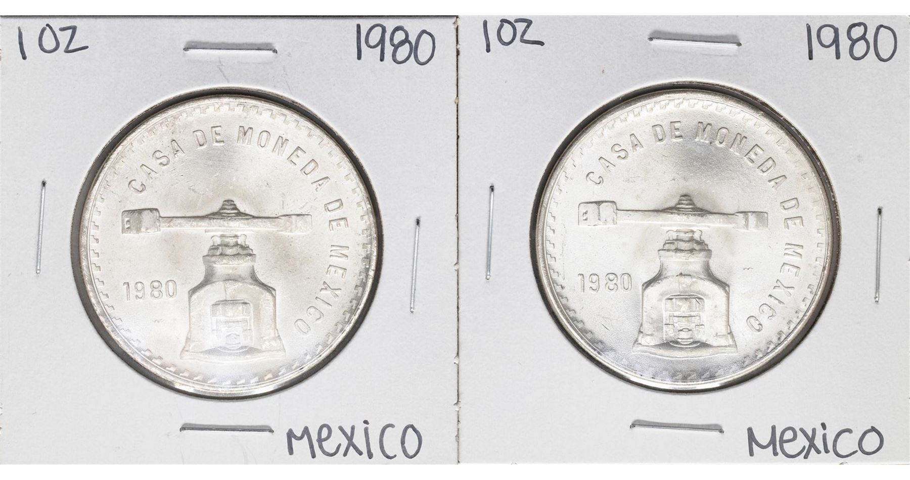 Lot of (2) Brilliant Uncirculated 1980 Mexico Una Onza Casas De Moneda Silver Coins