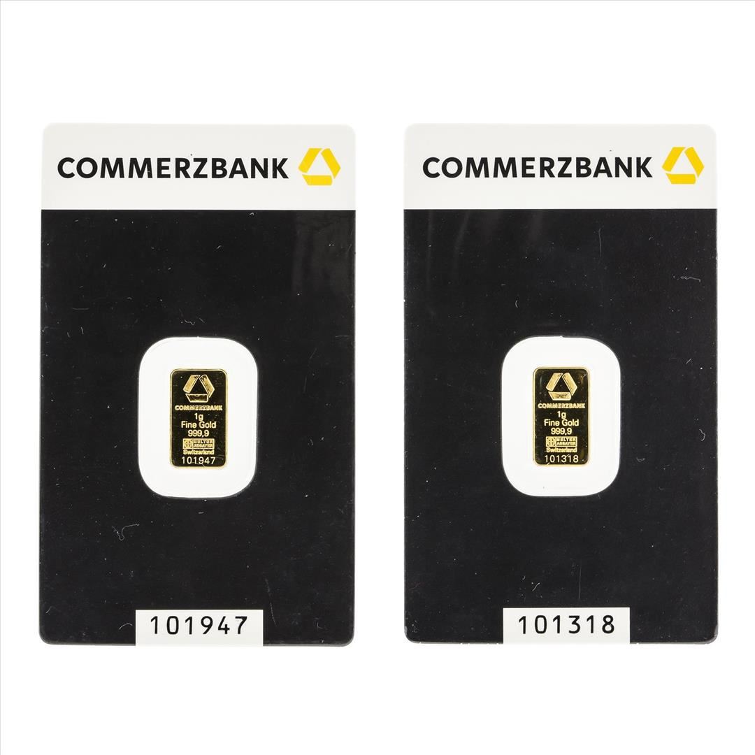One Lot of (2) Commerzbank 1 gram .9999 Gold Bars.