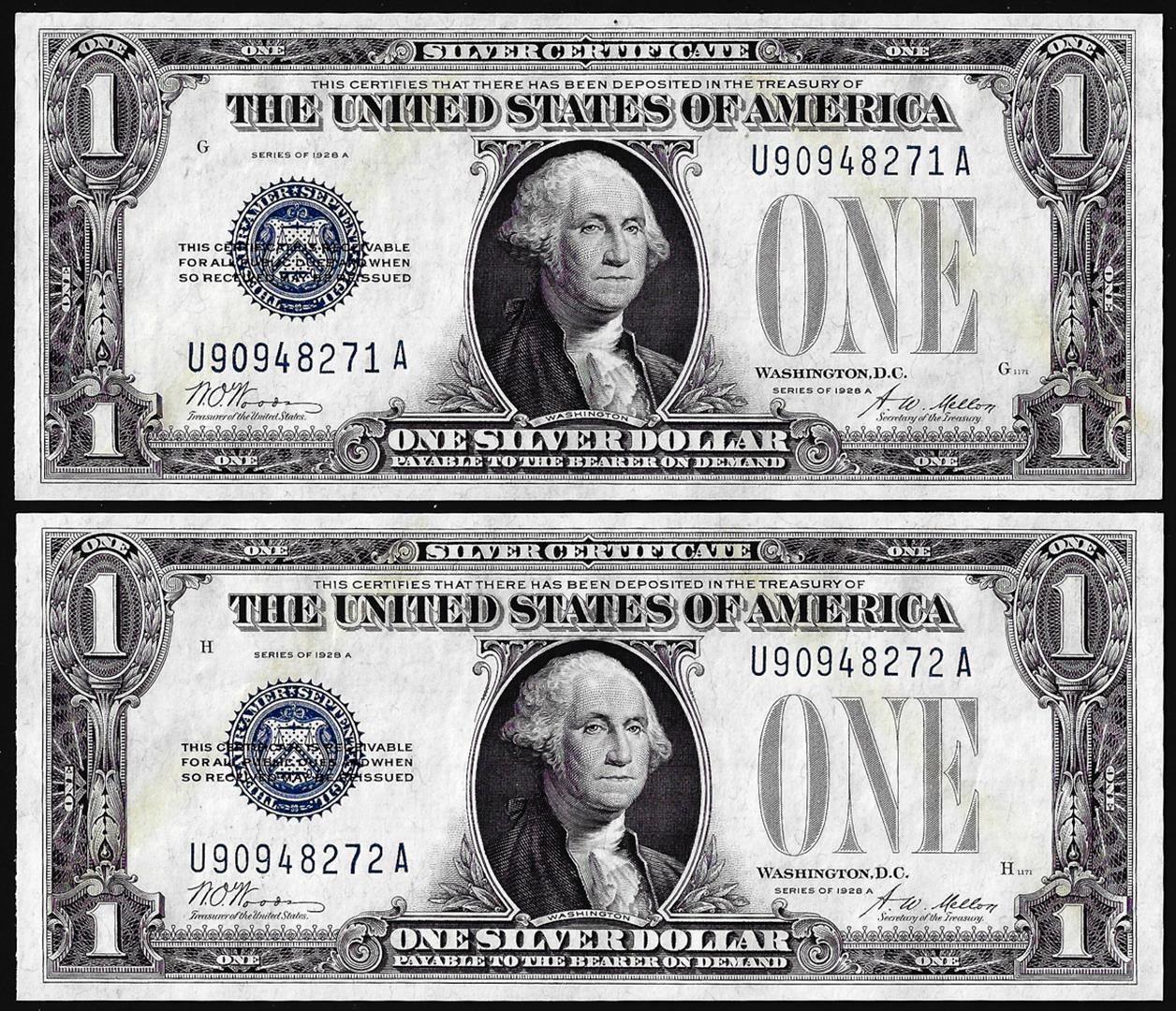 Lot of (2) Consecutive 1928A $1 Funnyback Silver Certificate Notes
