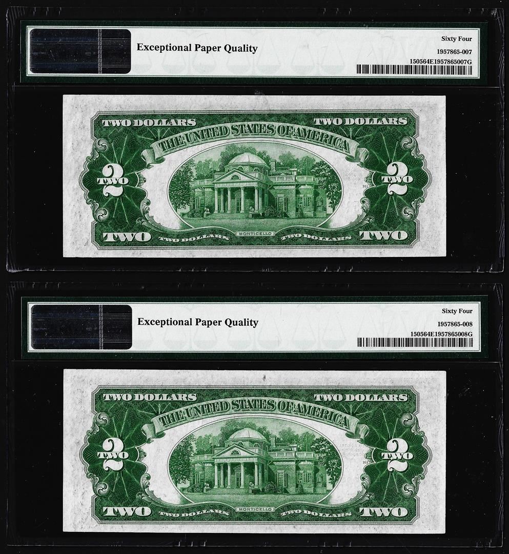 Lot of (2) Consecutive 1928D $2 Legal Tender Notes Fr.1505 PMG Choice Uncirculated 64EPQ