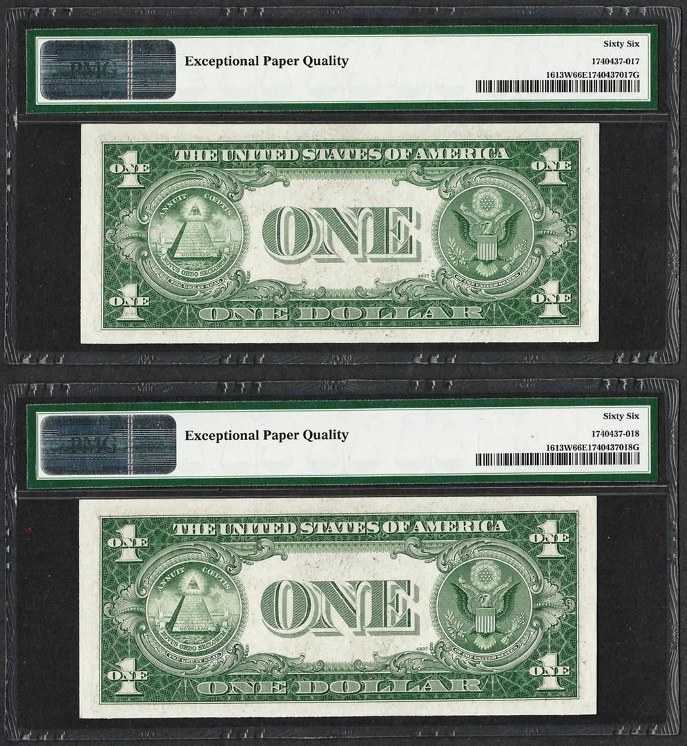 Lot of (2) Consecutive 1935D $1 Silver Certificate Notes PMG Gem Uncirculated 66EPQ