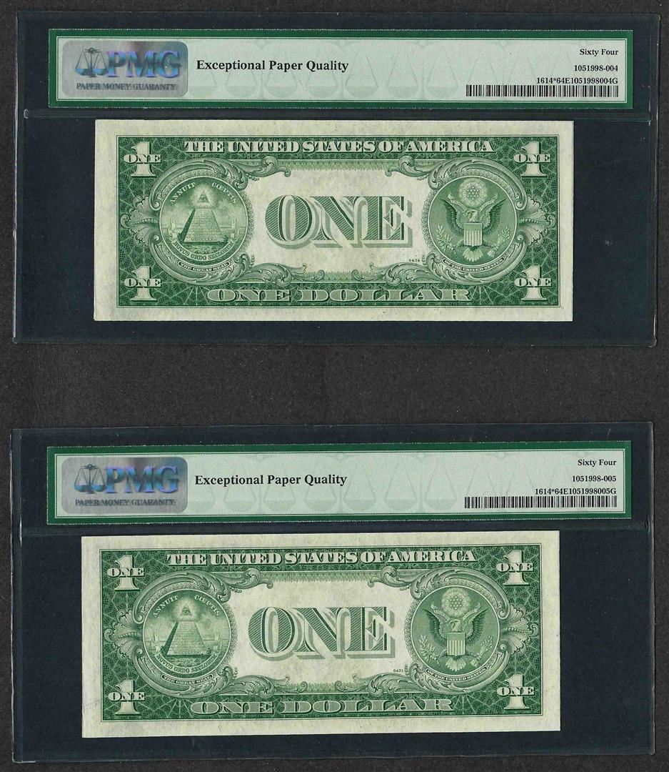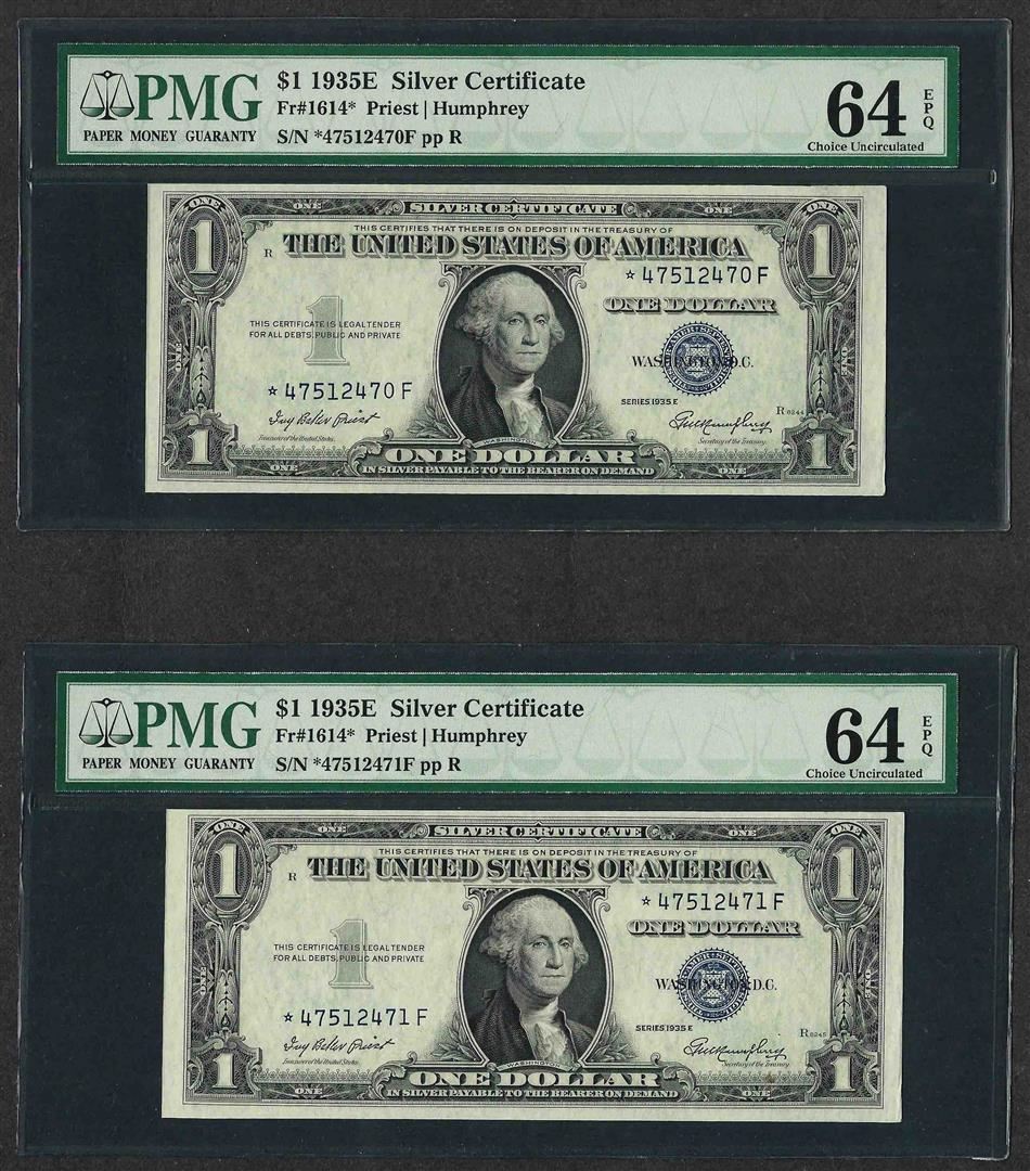 Lot of (2) Consecutive 1935E $1 Silver Certificate STAR Notes PMG Choice Unc. 64