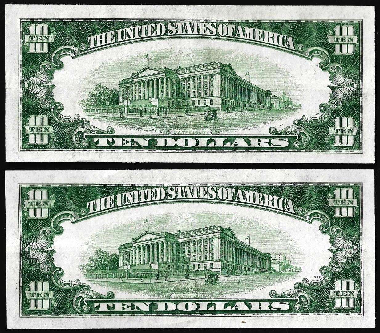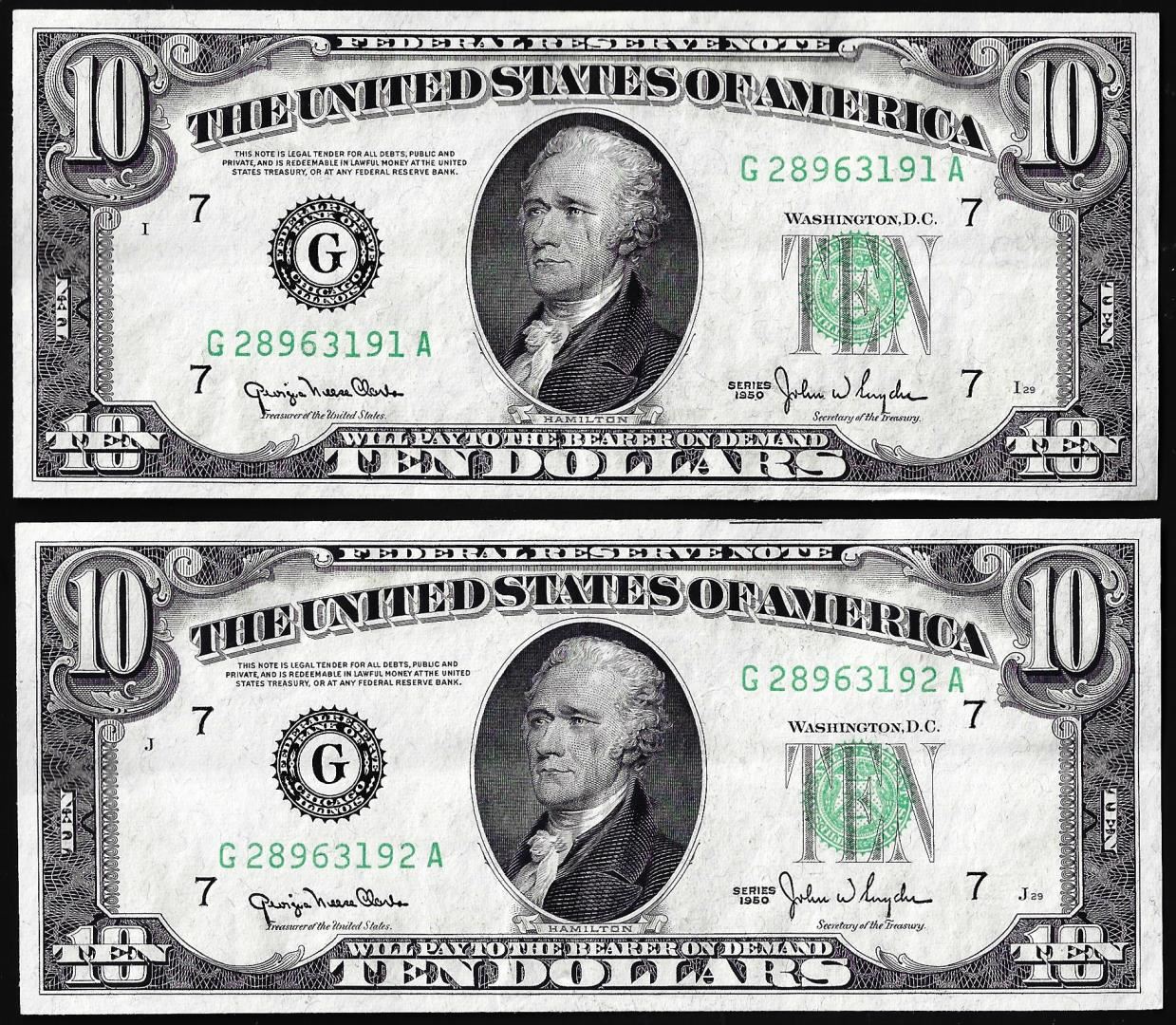 Lot of (2) Consecutive 1950 $10 Federal Reserve Notes Chicago