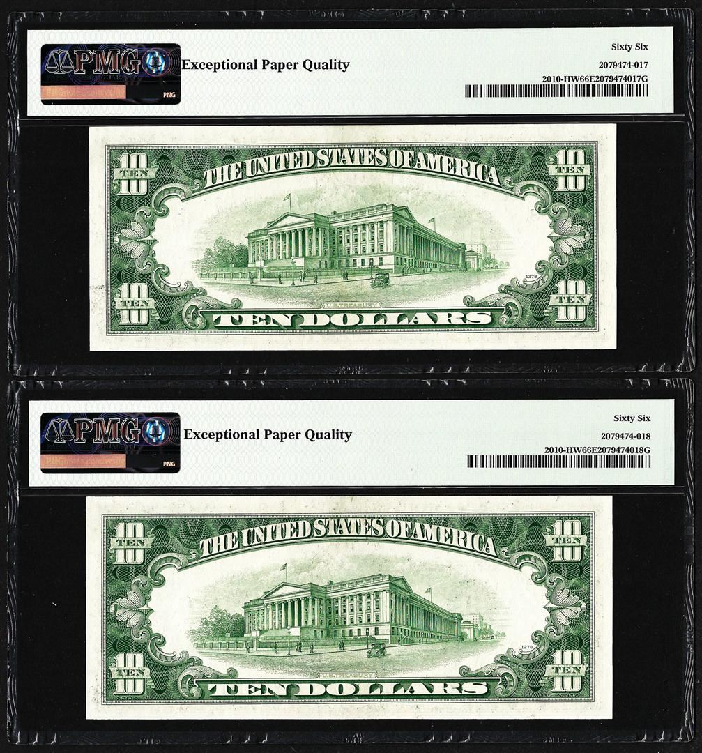 Lot of (2) Consecutive 1950 $10 Federal Reserve Notes STL PMG Gem Uncirculated 66EPQ
