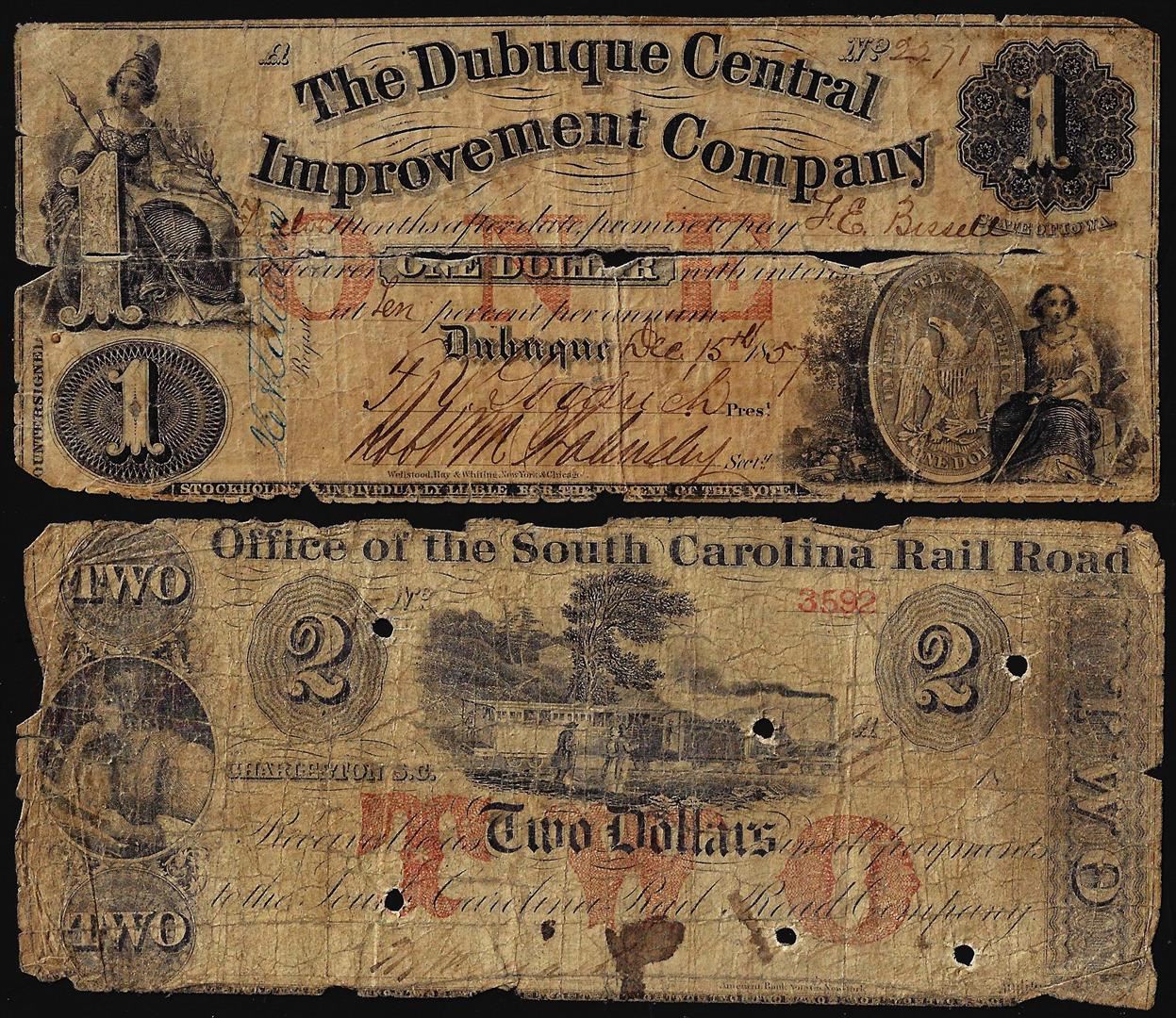 One Lot of (2) Miscellaneous 1800's Obsolete Banknotes.