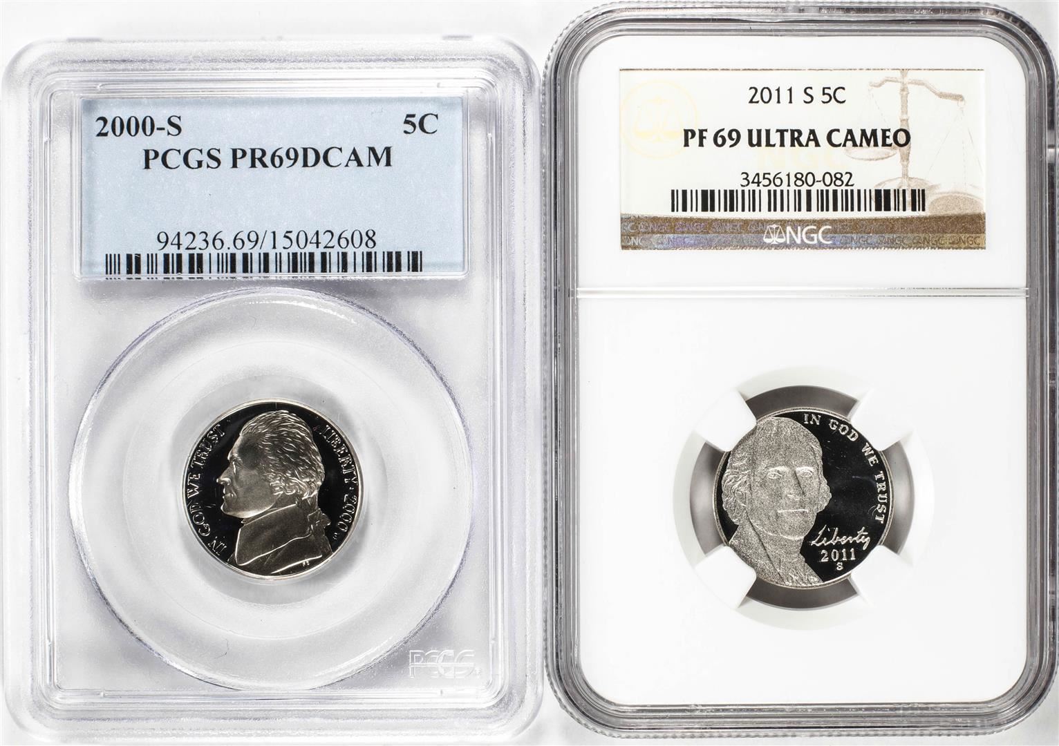 Lot of (2) Proof Nickel Coins NGC/PCGS Graded Proof 69 Ultra Cameo