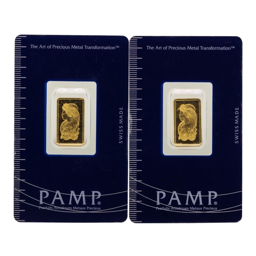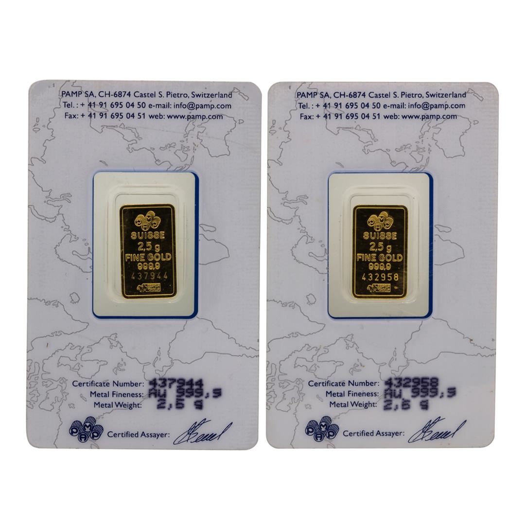 One Lot of (2) Suisse 2.5 Gram Fine Gold Pamp Gold Bars.