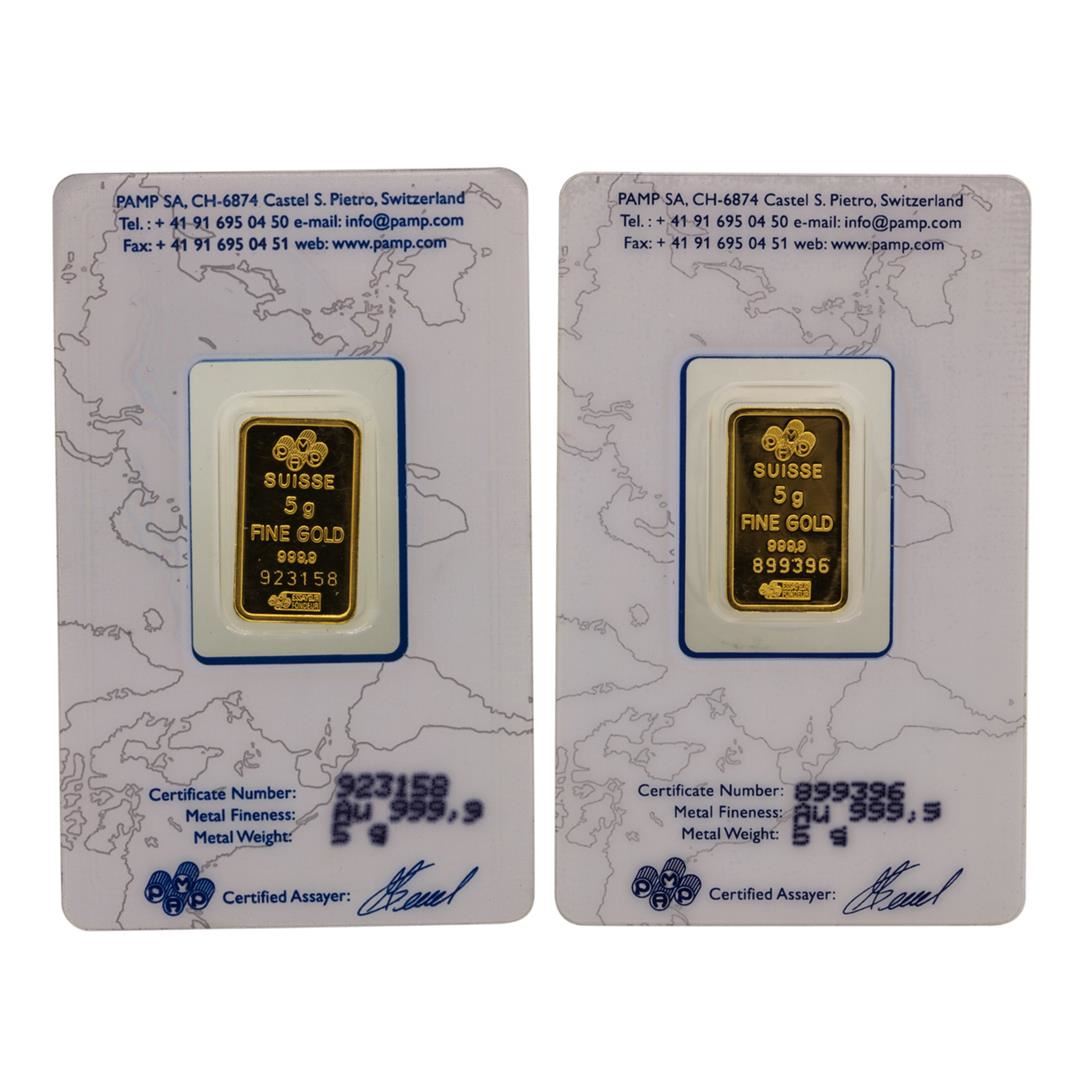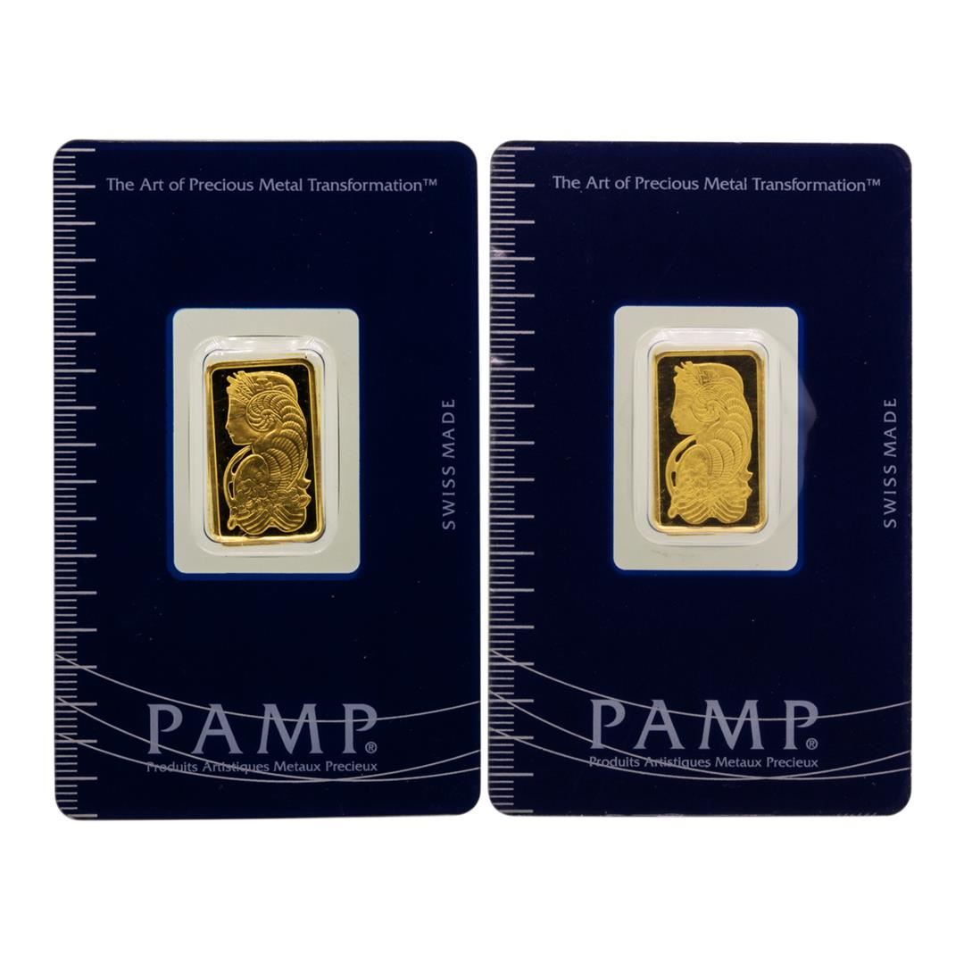 One Lot of (2) Suisse 5 Gram Fine Gold Pamp Gold Bars.