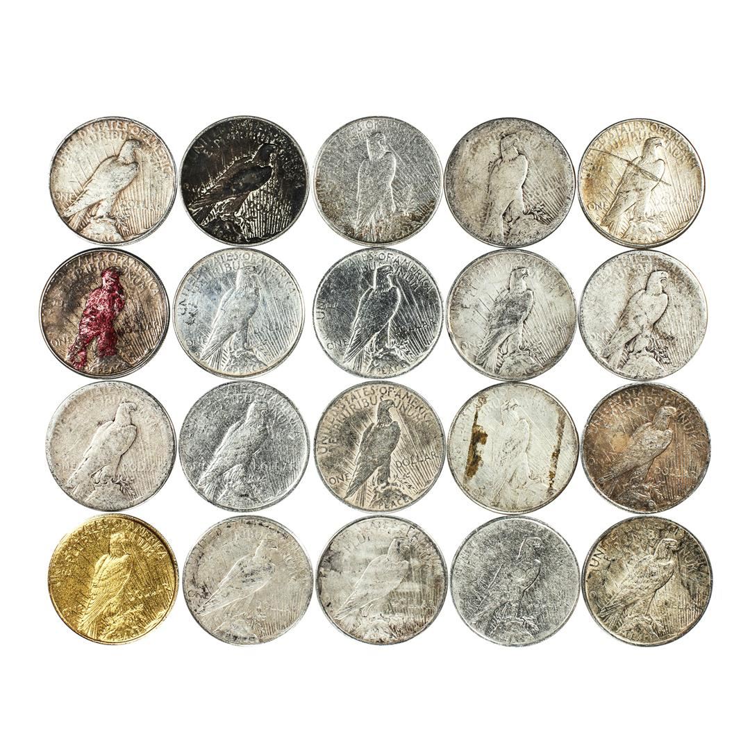 One Lot of (20) $1 Peace Silver Dollar Coins Culls.