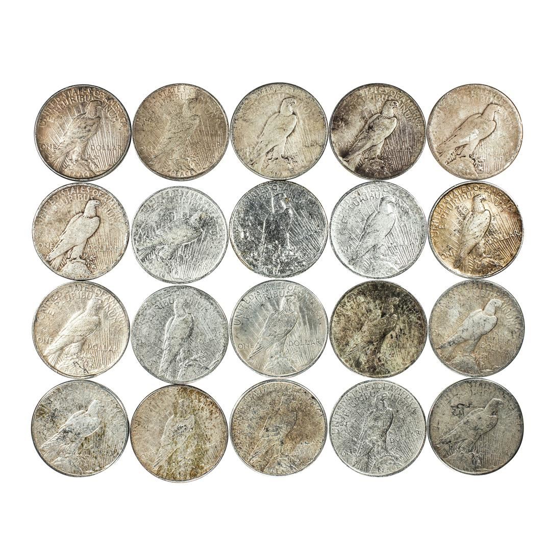 One Lot of (20) $1 Peace Silver Dollar Coins Culls.