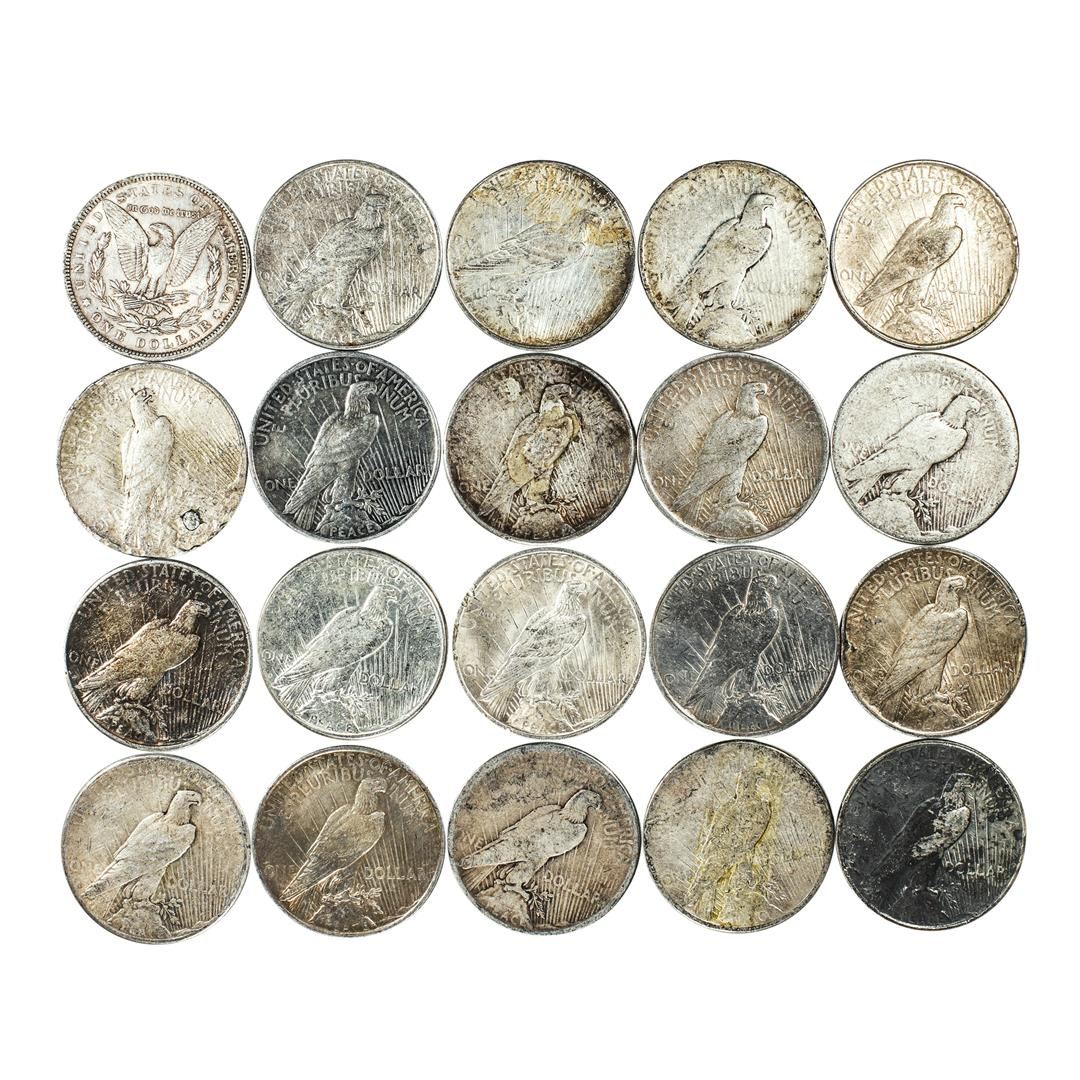 One Lot of (20) $1 Peace Silver Dollar Coins Culls.