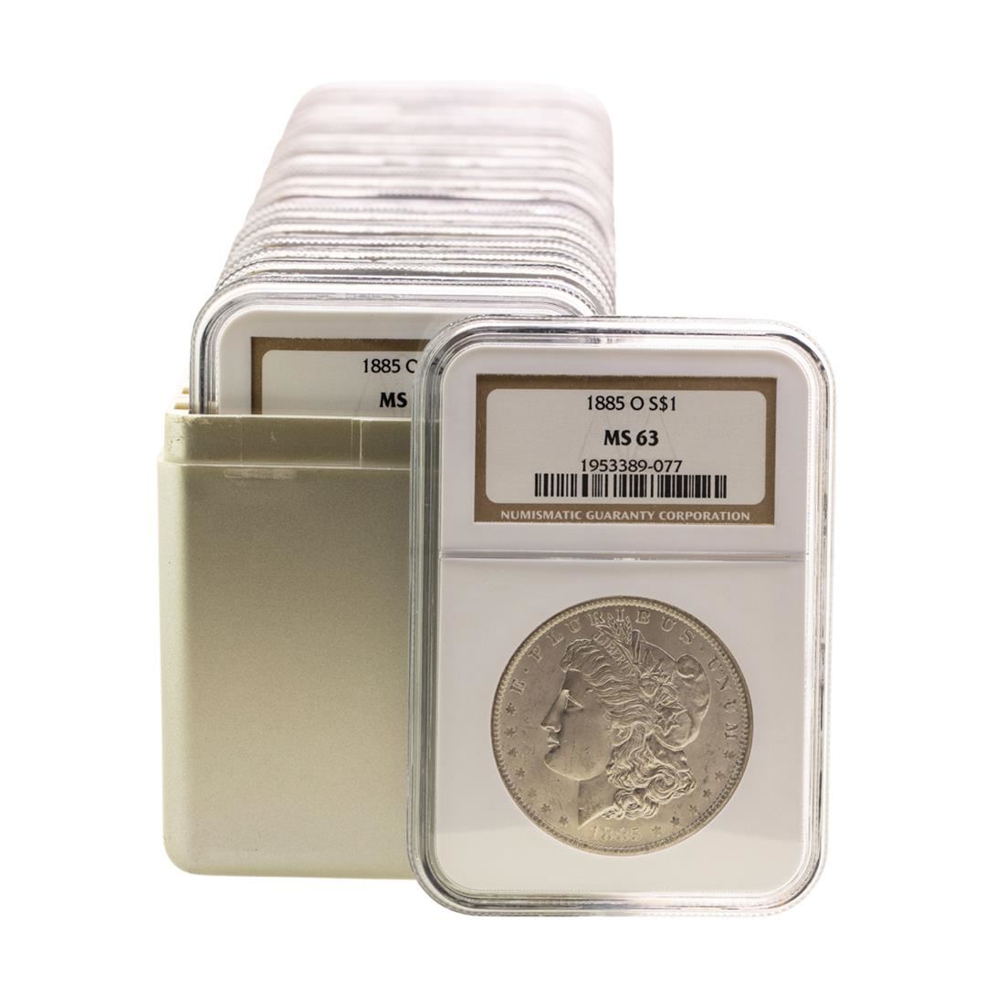 One Lot of (20) 1885-O $1 Morgan Silver Dollar Coins NGC MS63. NGC Certified.