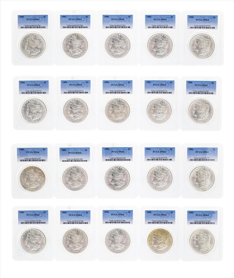 One Lot of (20) 1886 $1 Morgan Silver Dollar Coins PCGS MS64. PCGS Graded.