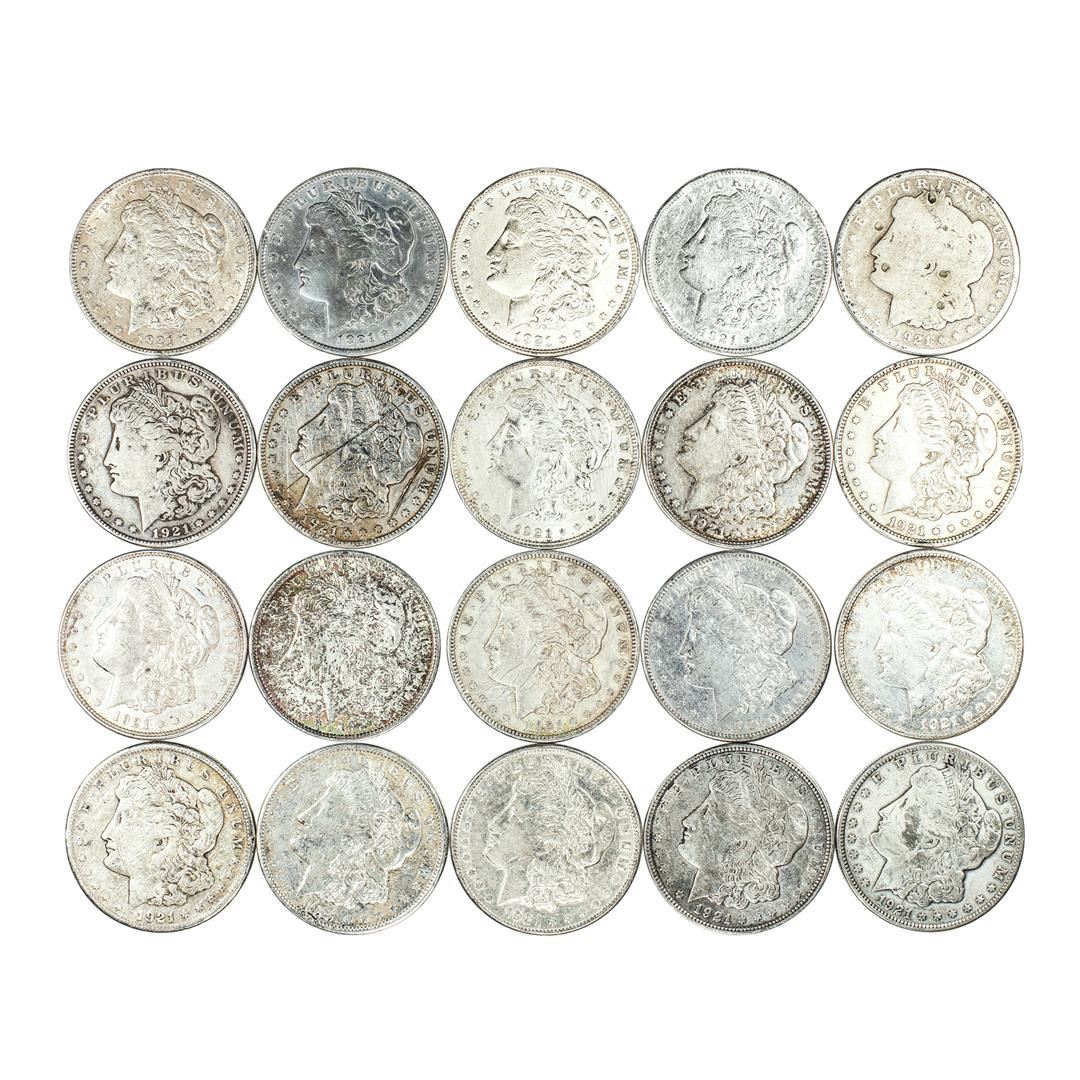 One Lot of (20) 1921 $1 Morgan Silver Dollar Coins Culls.