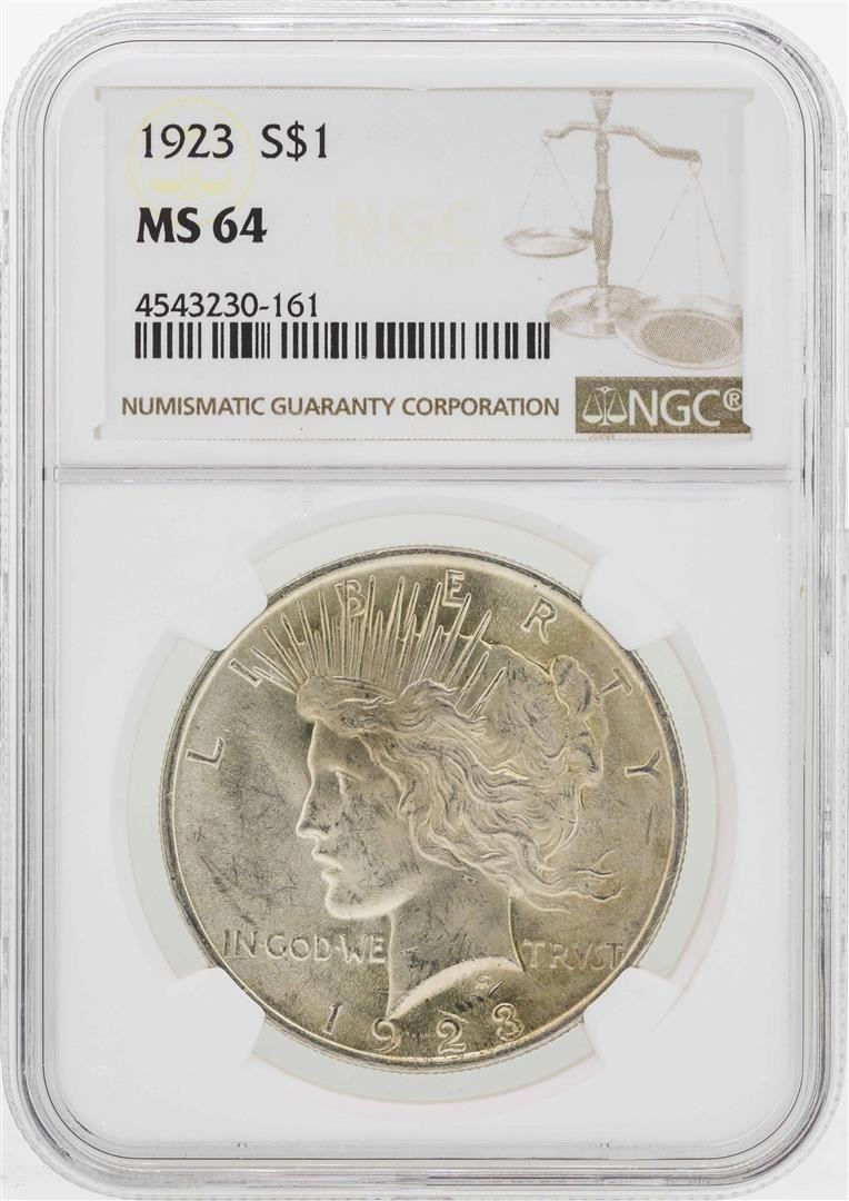 One Lot of (20) 1923 $1 Peace Silver Dollar Coins NGC MS64. NGC Certified.