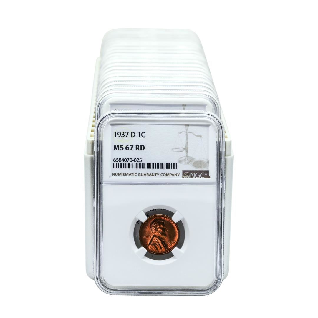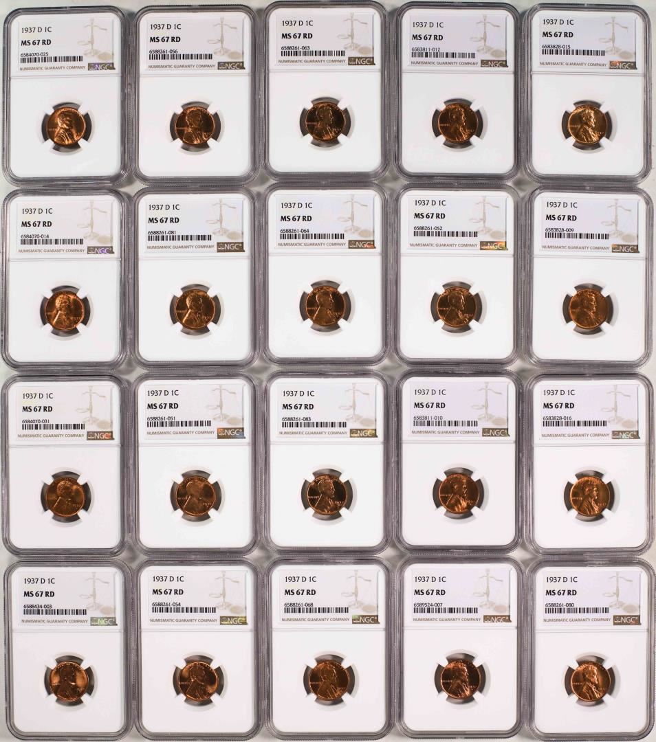 One Lot of (20) 1937-D Lincoln Wheat Cent Coins NGC MS67RD. NGC Certified.