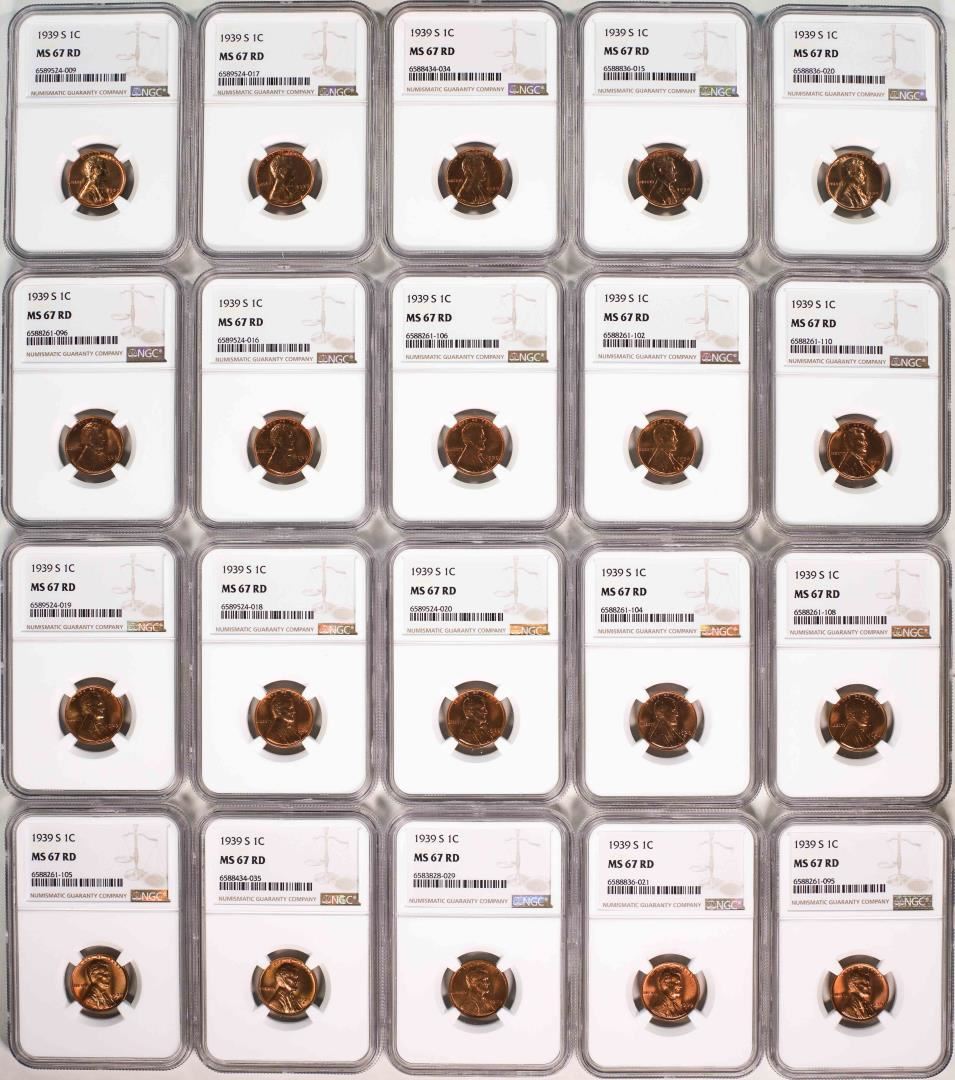One Lot of (20) 1939-S Lincoln Wheat Cent Coins NGC MS67RD. NGC Certified.