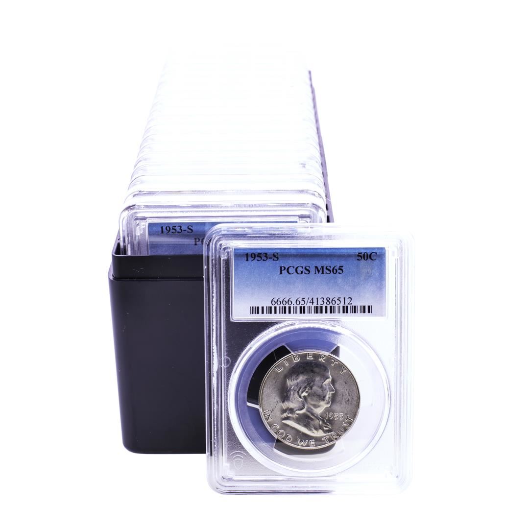 One Lot of (20) 1953-S Franklin Half Dollar Coins PCGS MS65. PCGS Graded.