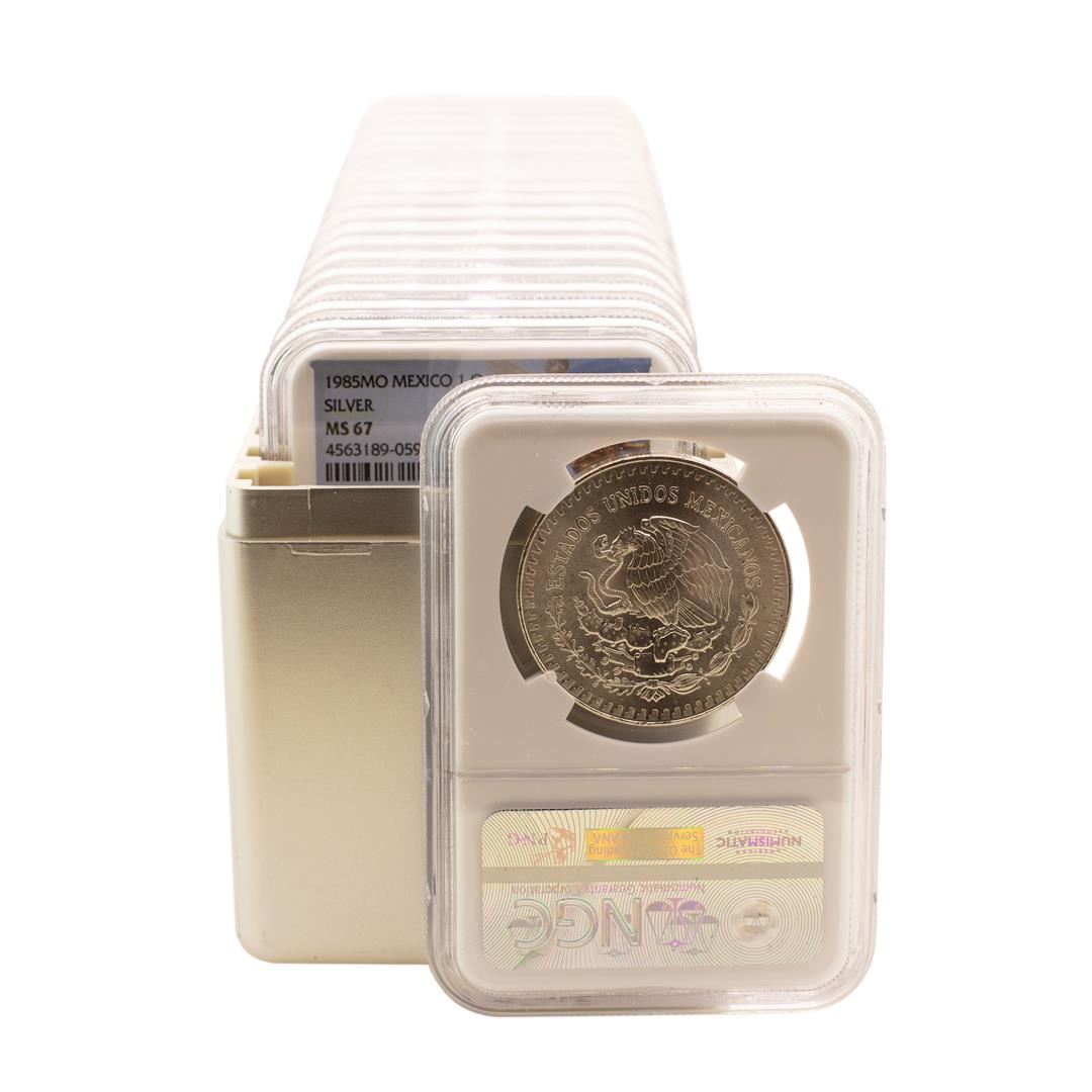Lot of (20) 1985Mo Mexico 1 Onza Libertad Silver Coins NGC MS67