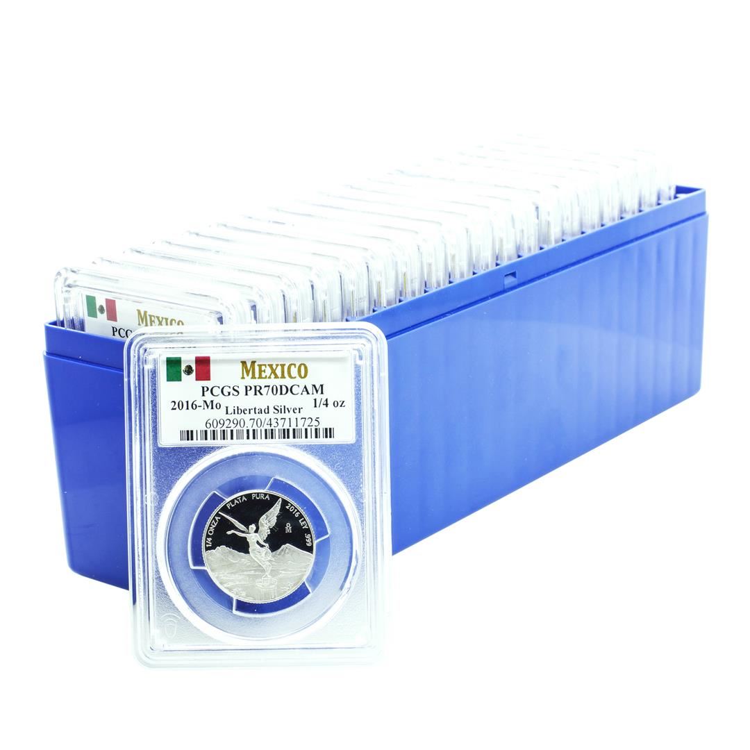 One Lot of (20) 2016-Mo Mexico Proof 1/4 oz Silver Libertad Coins PCGS PR70DCAM. PCGS Graded.