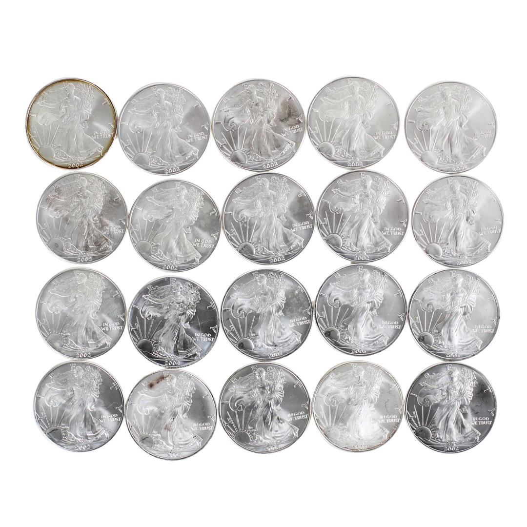 Lot of (20) Brilliant Uncirculated Mixed Date $1 American Silver Eagle Coins