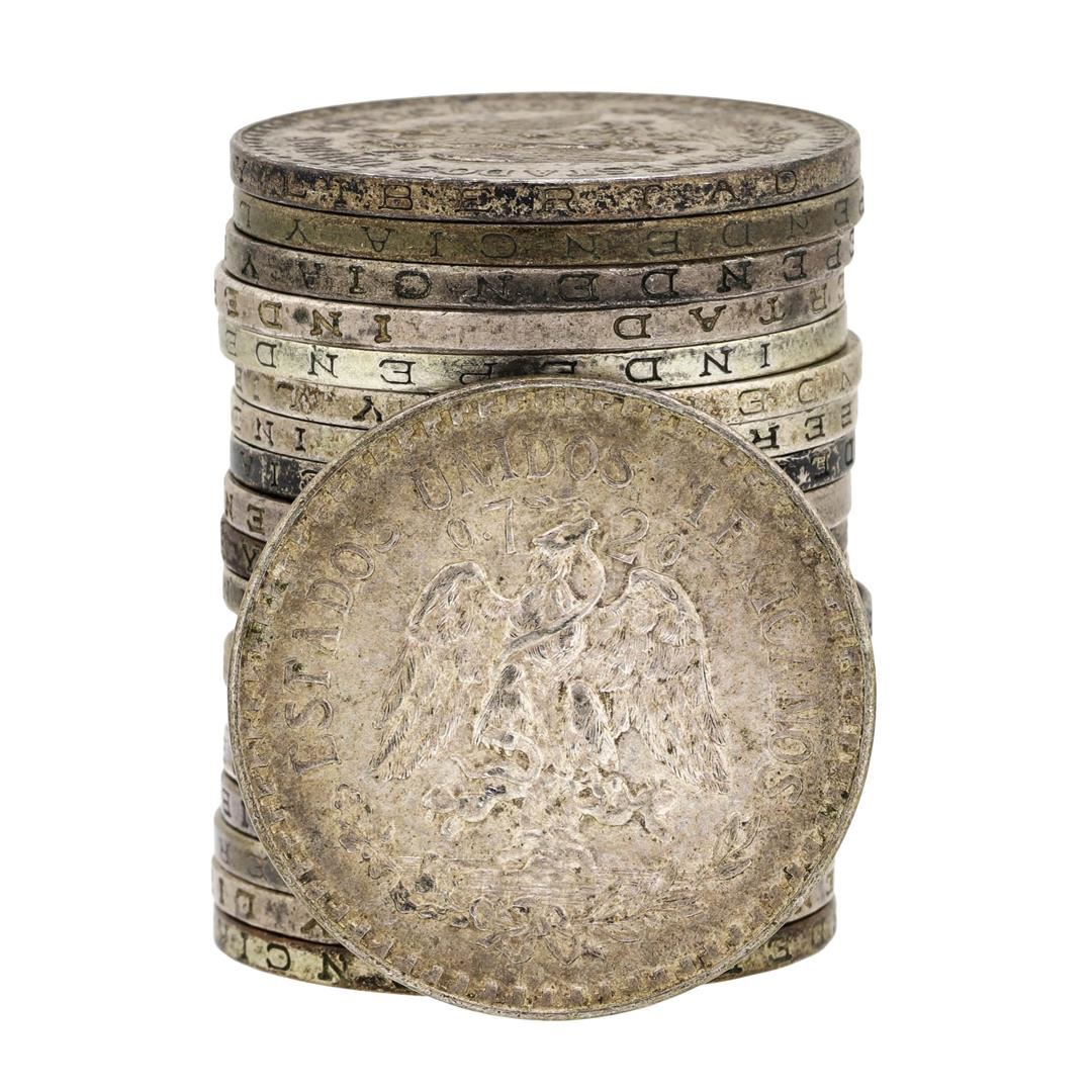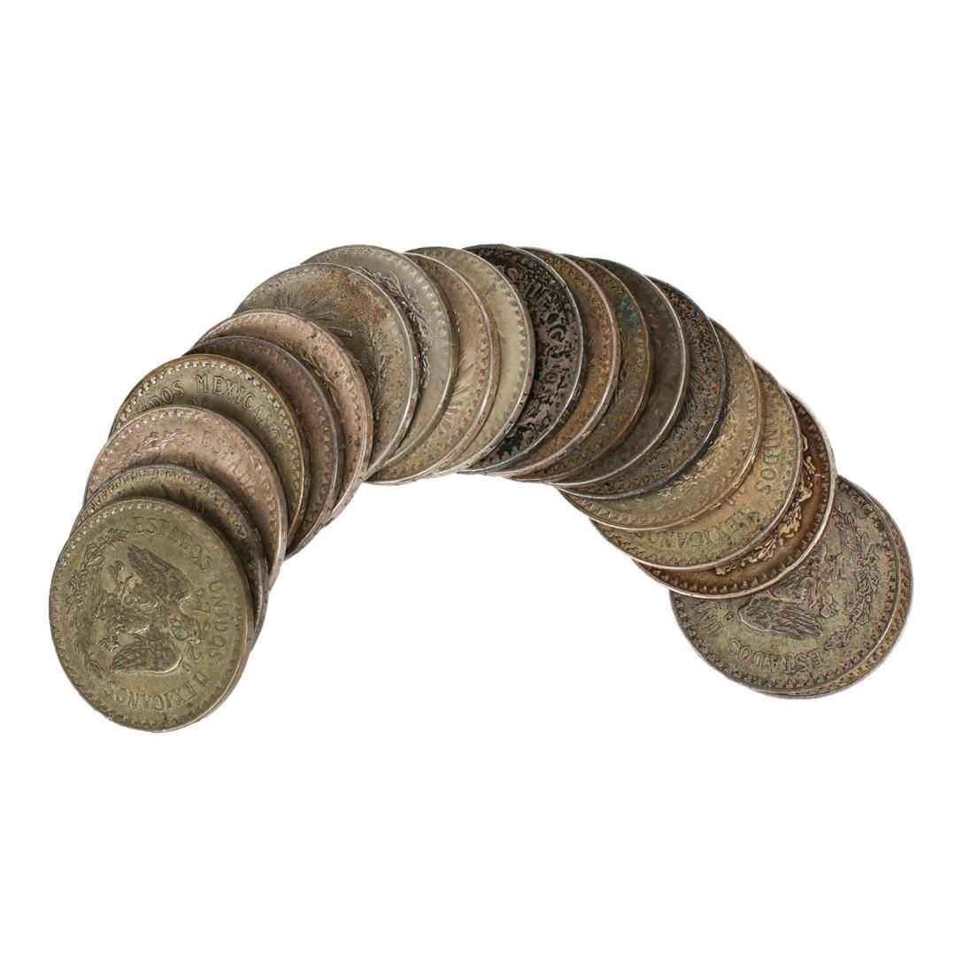 Lot of (20) Mixed Date 1922-1945 Mexico Un Peso Silver Coins