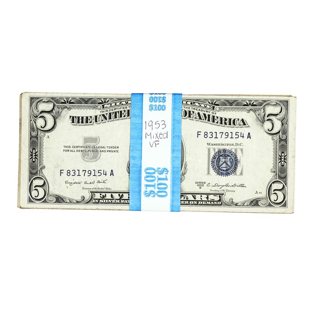 Lot of (20) Mixed Series 1953 $5 Silver Certificate Notes - Very Fine