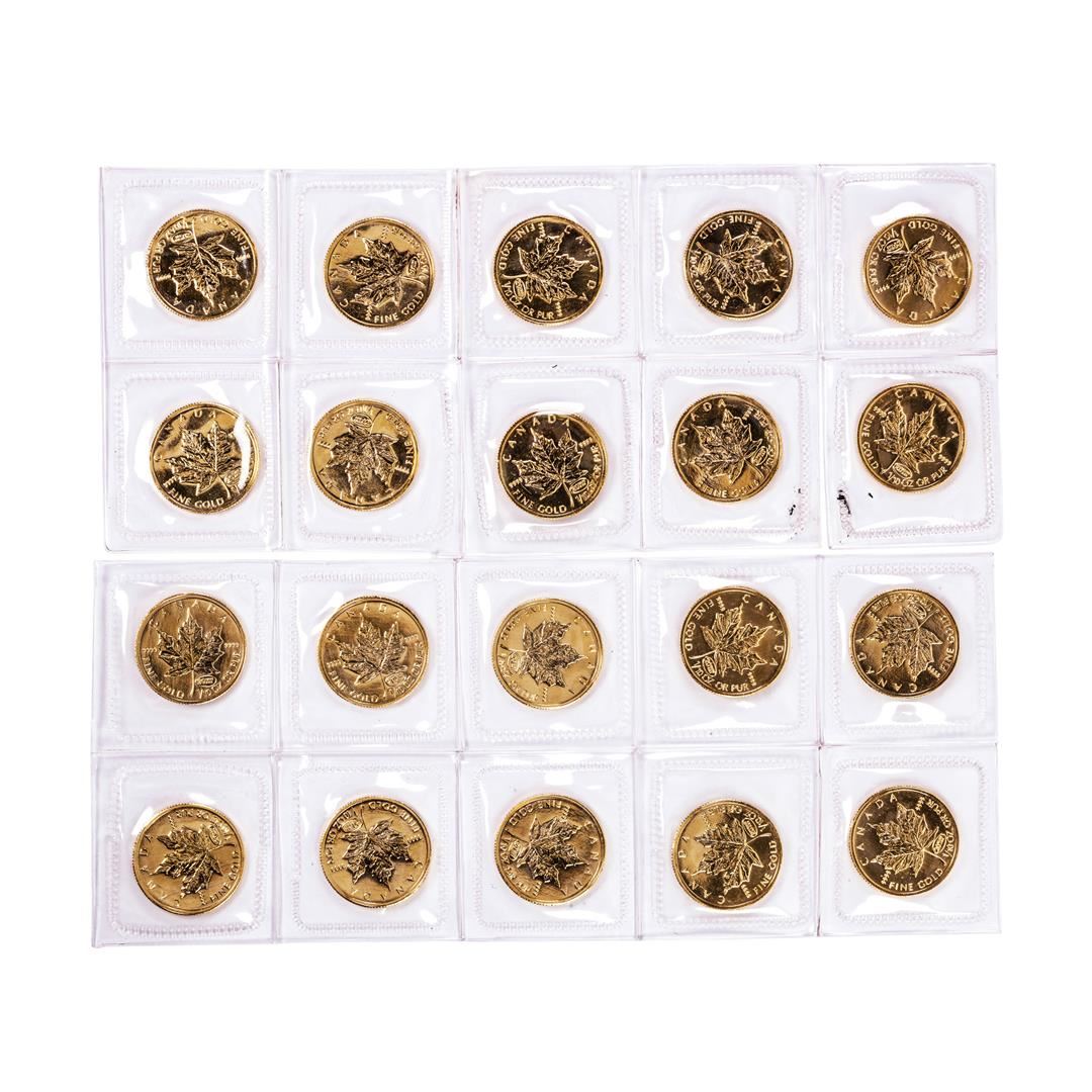 One Lot of (20) Sealed 1999 Canadian $5 Maple Leaf Gold Coins.